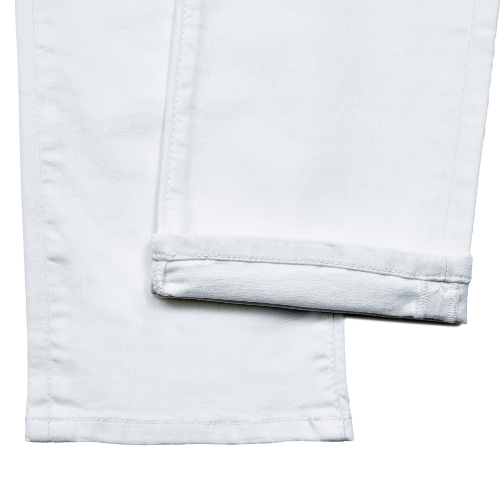 こちらはガーメントダイ加工が施された、特に春夏に出番が多いであろうホワイトパンツ。JACOB COHENの人気モデルBARDが採用されていまして、股下から裾までを綺麗に見せるテーパードの効いたラインでスマートな見栄えを演出してくれます。