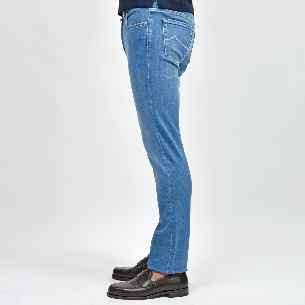 しなやかでストレッチ性のあるJACOB COHEN(ヤコブコーエン)の一本、ここ数年のメインラインに関してはこういったタイプの提案が主だった感じがします。穿きやすく、それでいて見栄えはしっかりシュッとしている、大人の男性にとって必要な要素をしっかりキープしている、そんな印象です。