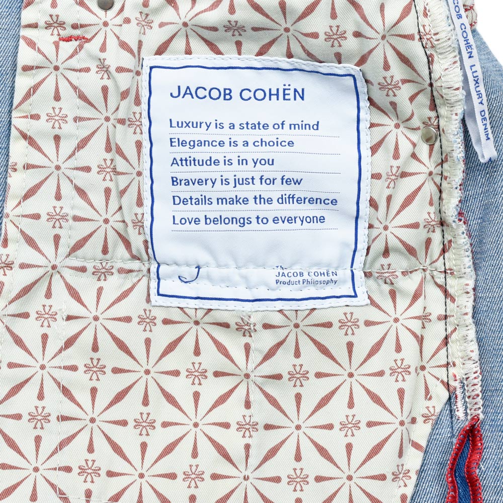 大胆に主張する訳ではなくしかしさり気なくポイント使いとして赤を取り入れてる点に大人の余裕を感じますね。総合的に見てもJACOB COHENが備えるこの空気感は類似するものがないと思います。