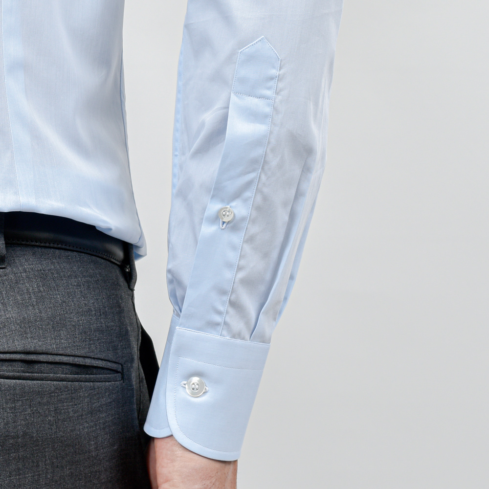 gujiでは襟・カフスに使用される芯をソフトなものに、またネックサイズに対しボディサイズをワンサイズダウンしオーダー。柔和ながらスマート印象にこだわっています。