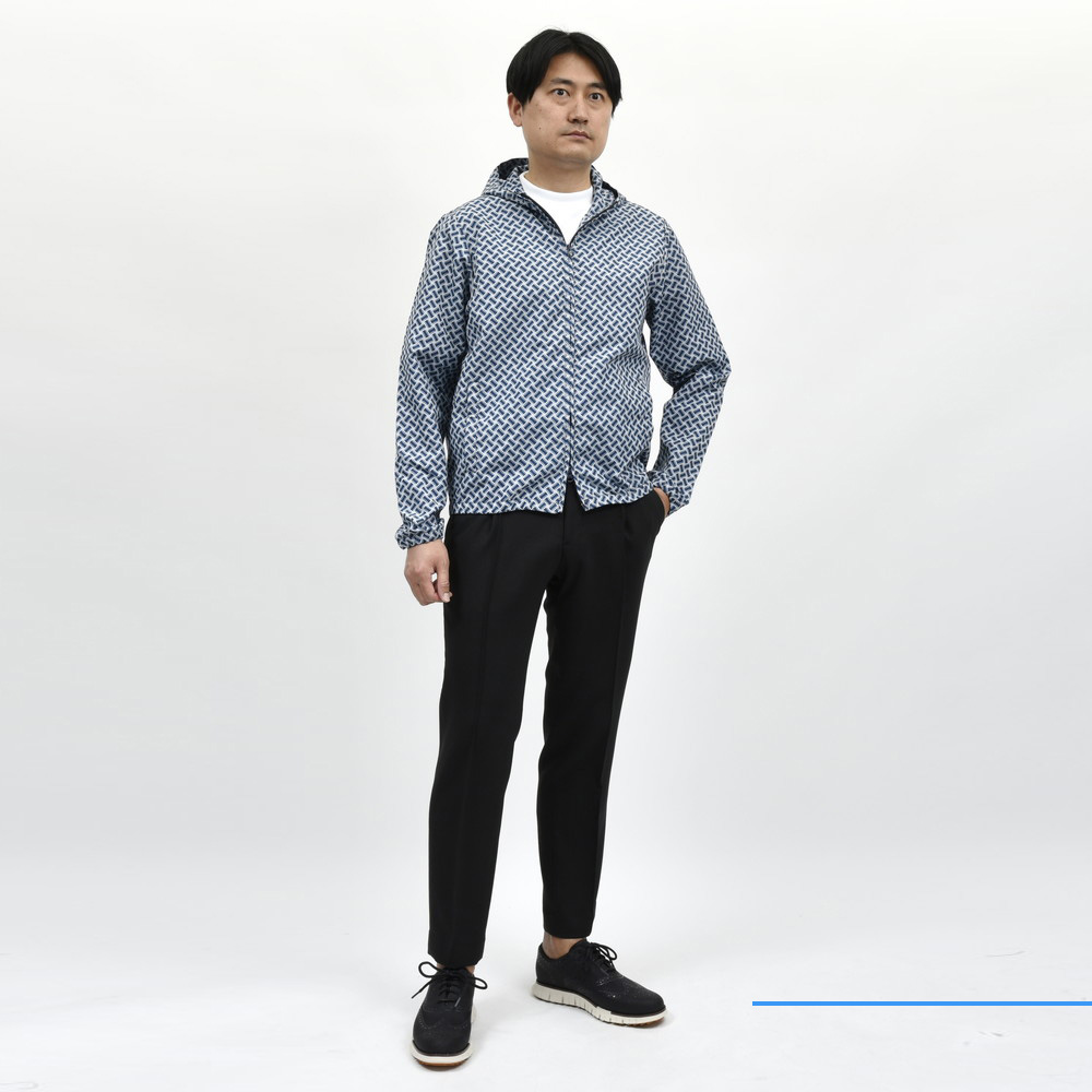フード付きでカジュアルながらも上質な仕立てとシルエットで品のある大人のコーディネートに仕上がります。