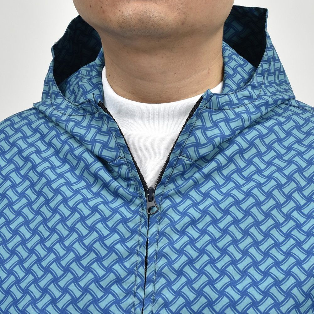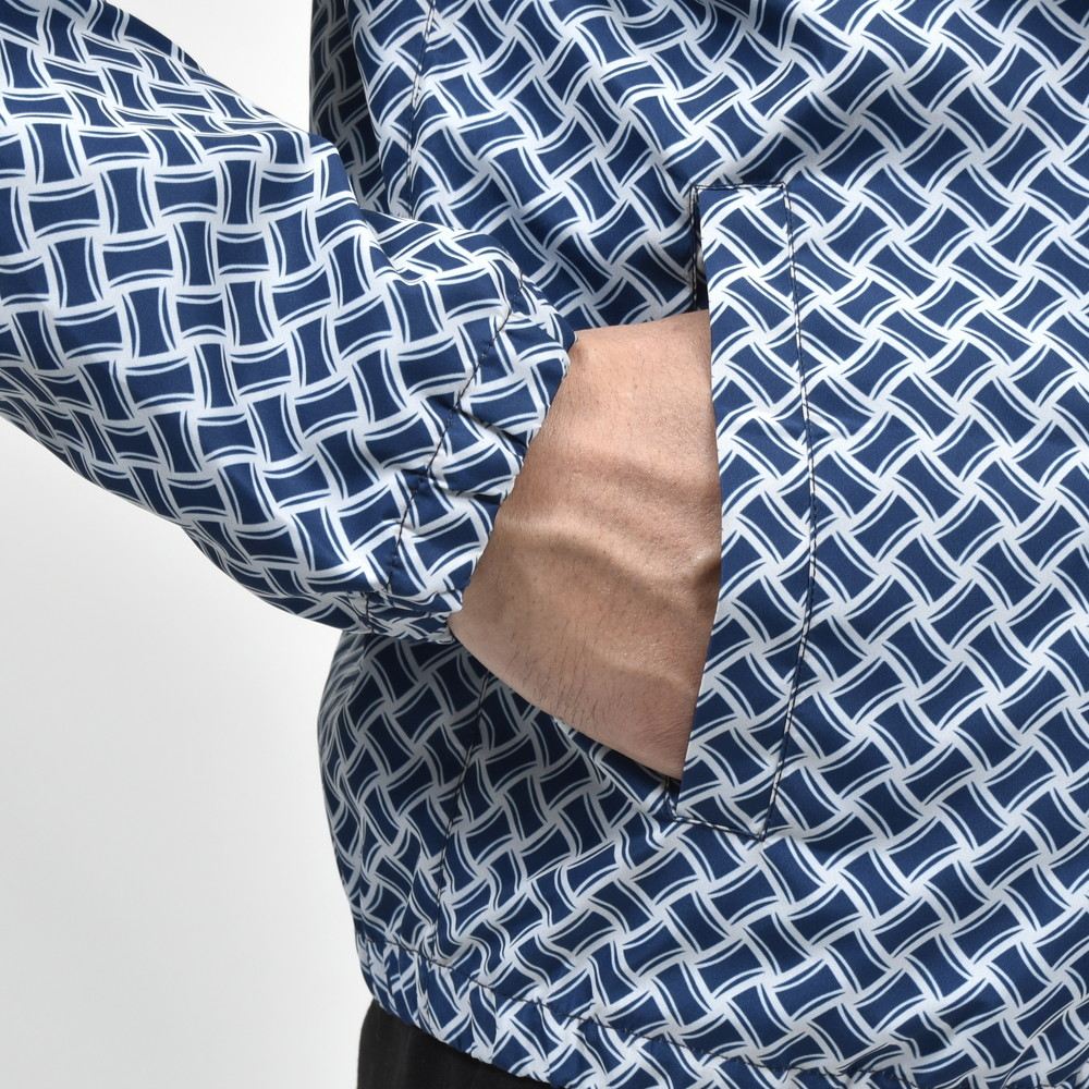 Drumohrのアイコンパターンである“ビスコッティ”柄を全面にプリントしたポリエステル素材のジップフーディー、ブランドとしてはゴルフ用というわけではなく、プールやクルージングの際の風よけ、ウィンドブレーカー的な用途のものだと思います・・・が、これがゴルフにもなかなか良さそうですね。