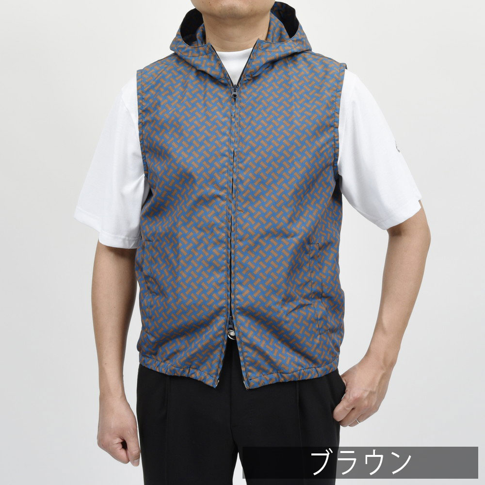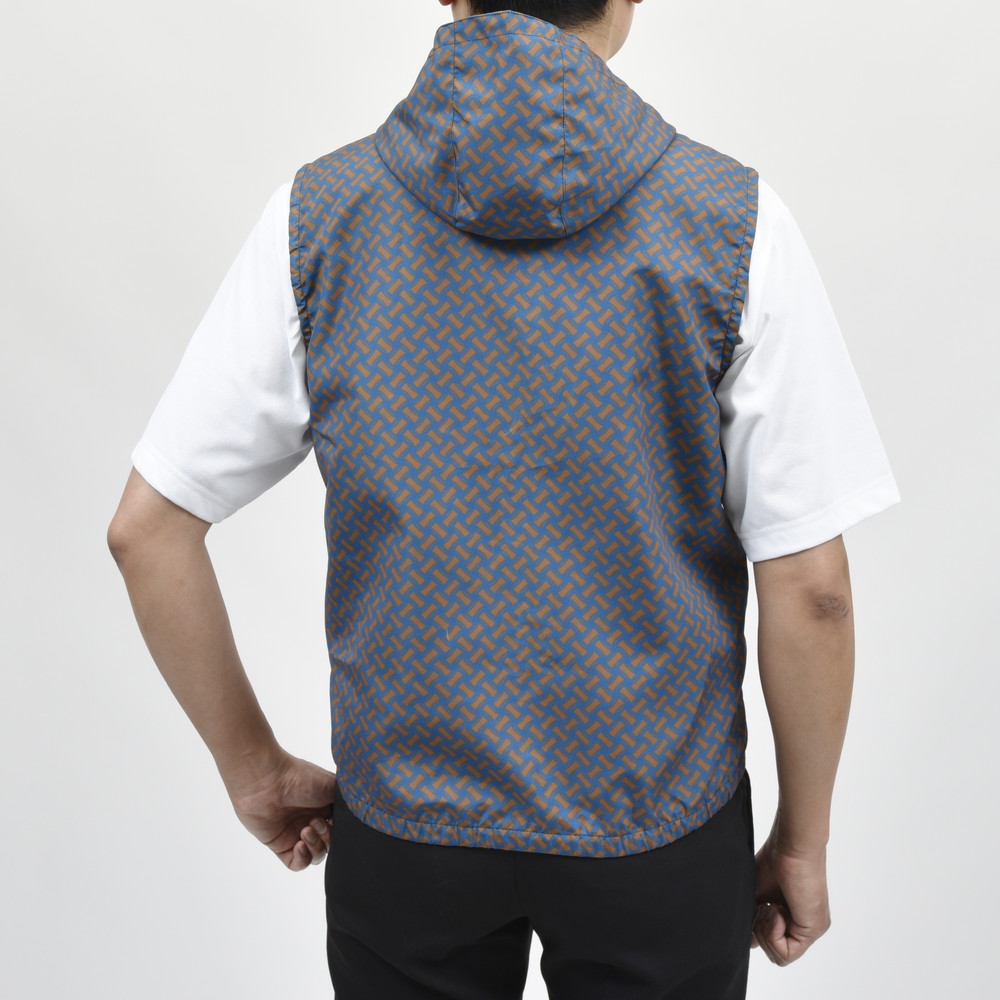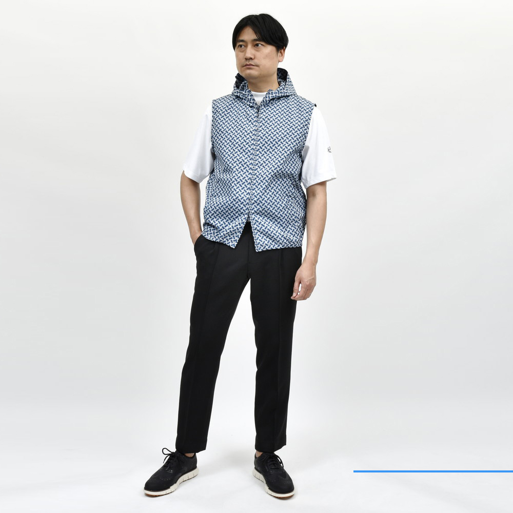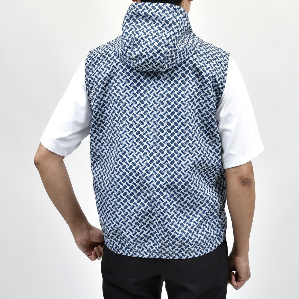 Drumohrのアイコンパターンである“ビスコッティ”柄を全面にプリントしたポリエステル素材のジップベスト、ブランドとしてはゴルフ用というわけではなく、プールやクルージングの際の風よけ、ウィンドブレーカー的な用途のものだと思います・・・が、これがゴルフにもなかなか良さそうですね。