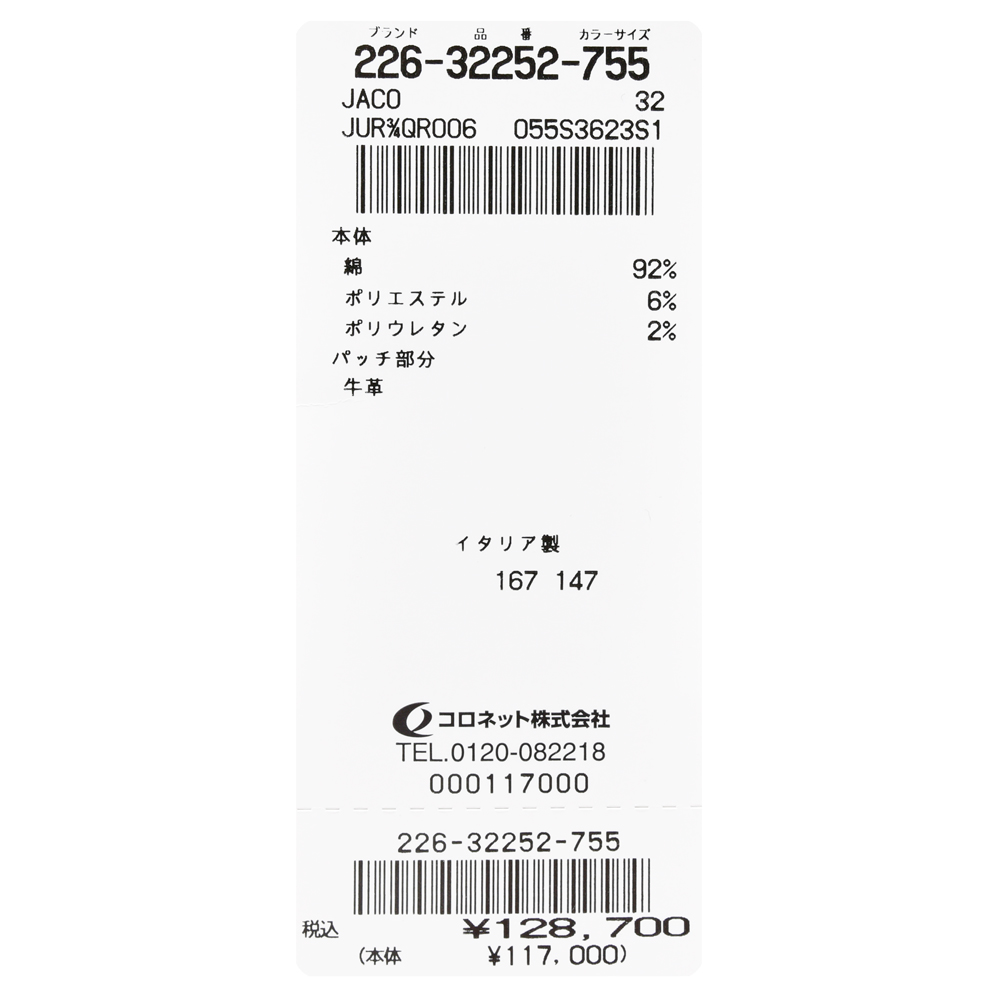シンプルイズザベスト的な一本でして、どこかパリっぽい感じもする色合いですね。デニム自体はシャープな感じでイタリアらしい感じではありますが知的さも醸し出すタイプになっています。