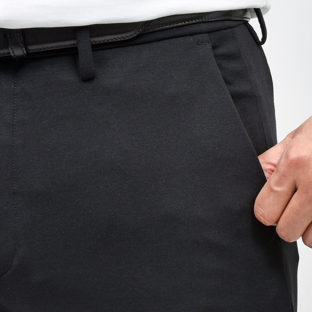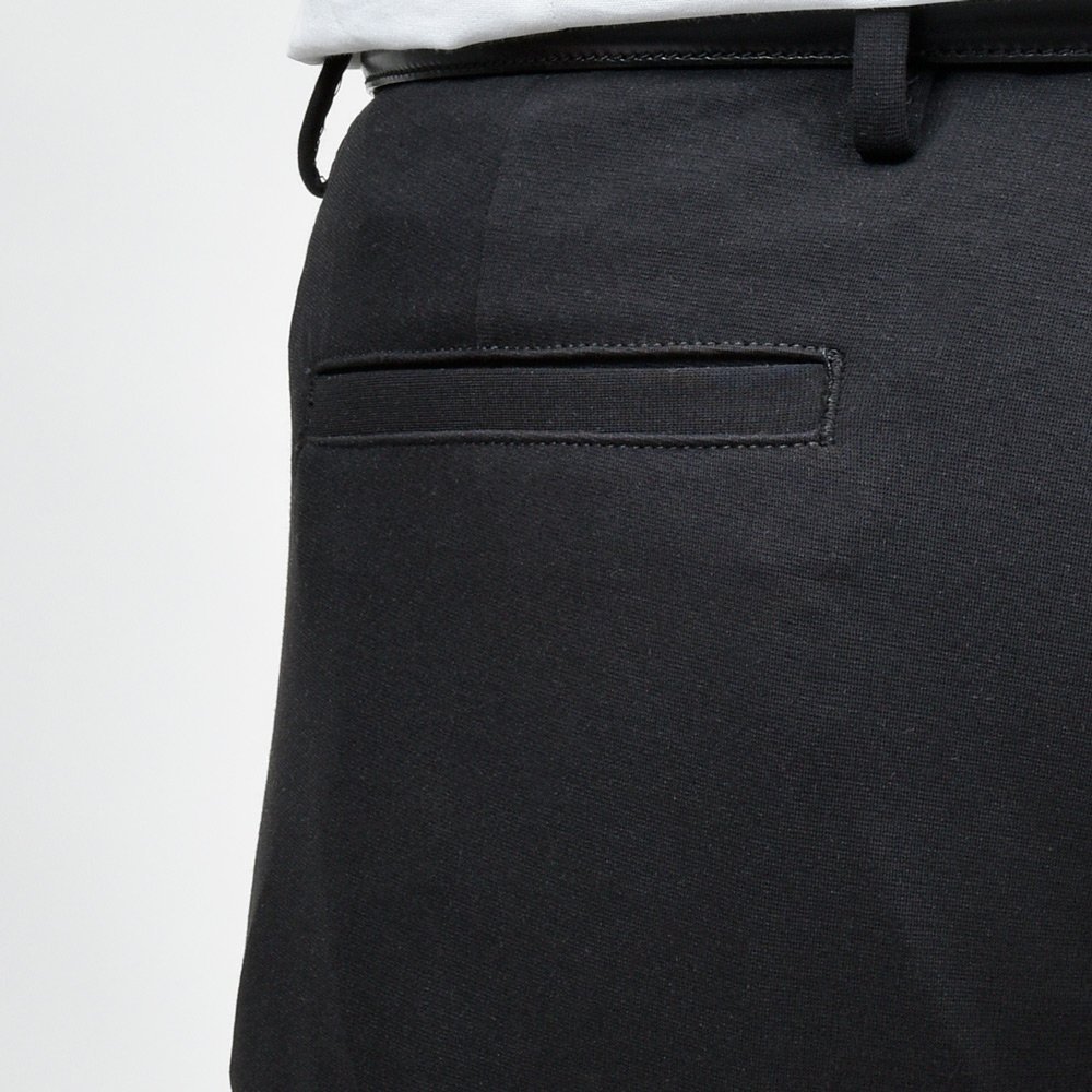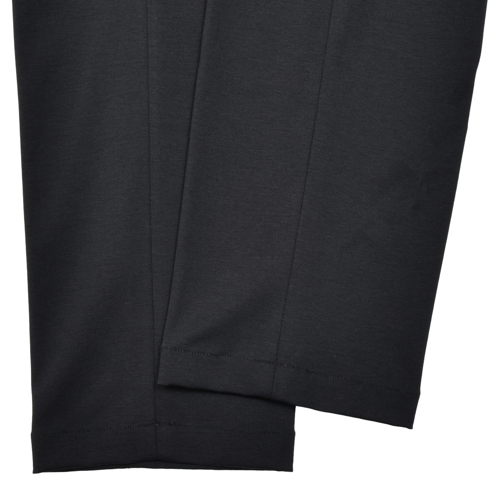 シルエットが直線的で足がスラリと見えますし、キックバックの強いジャージ生地なので型崩れなく、長く穿いていただけます。