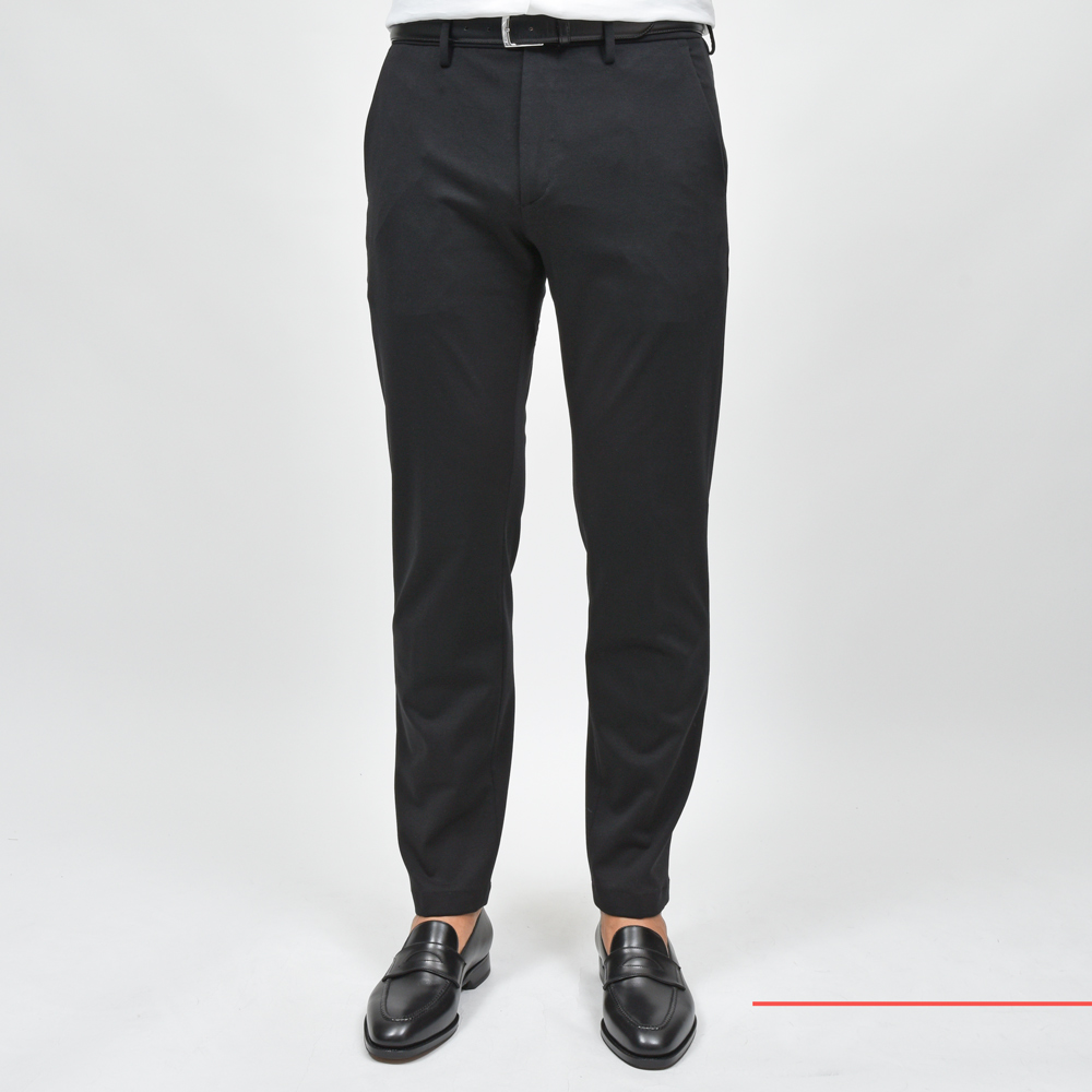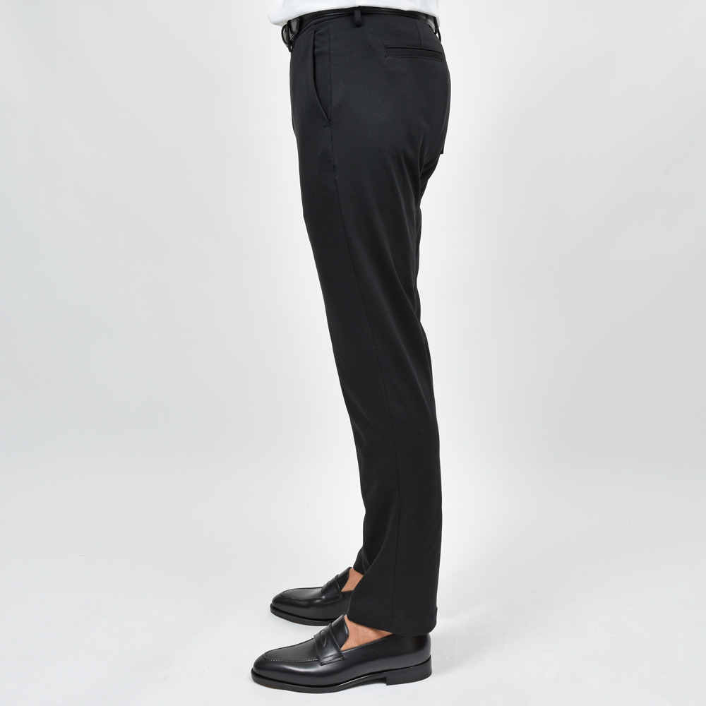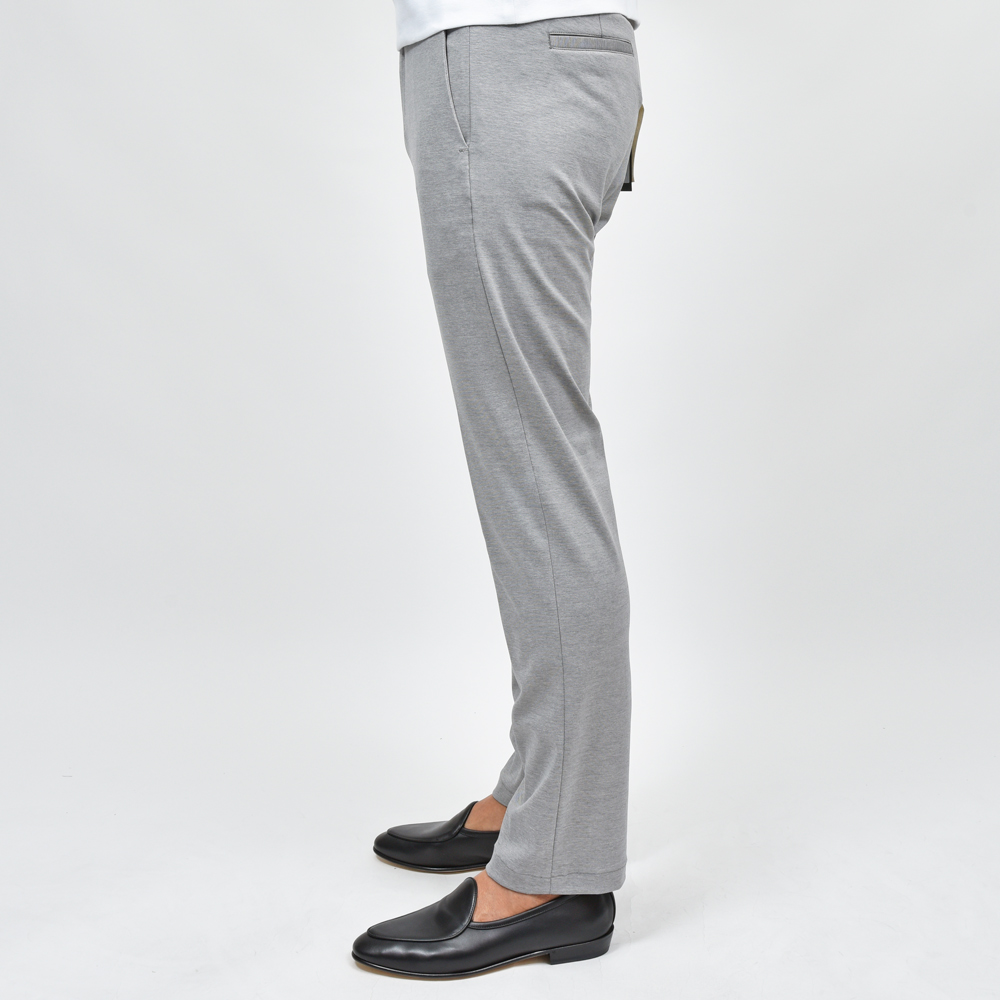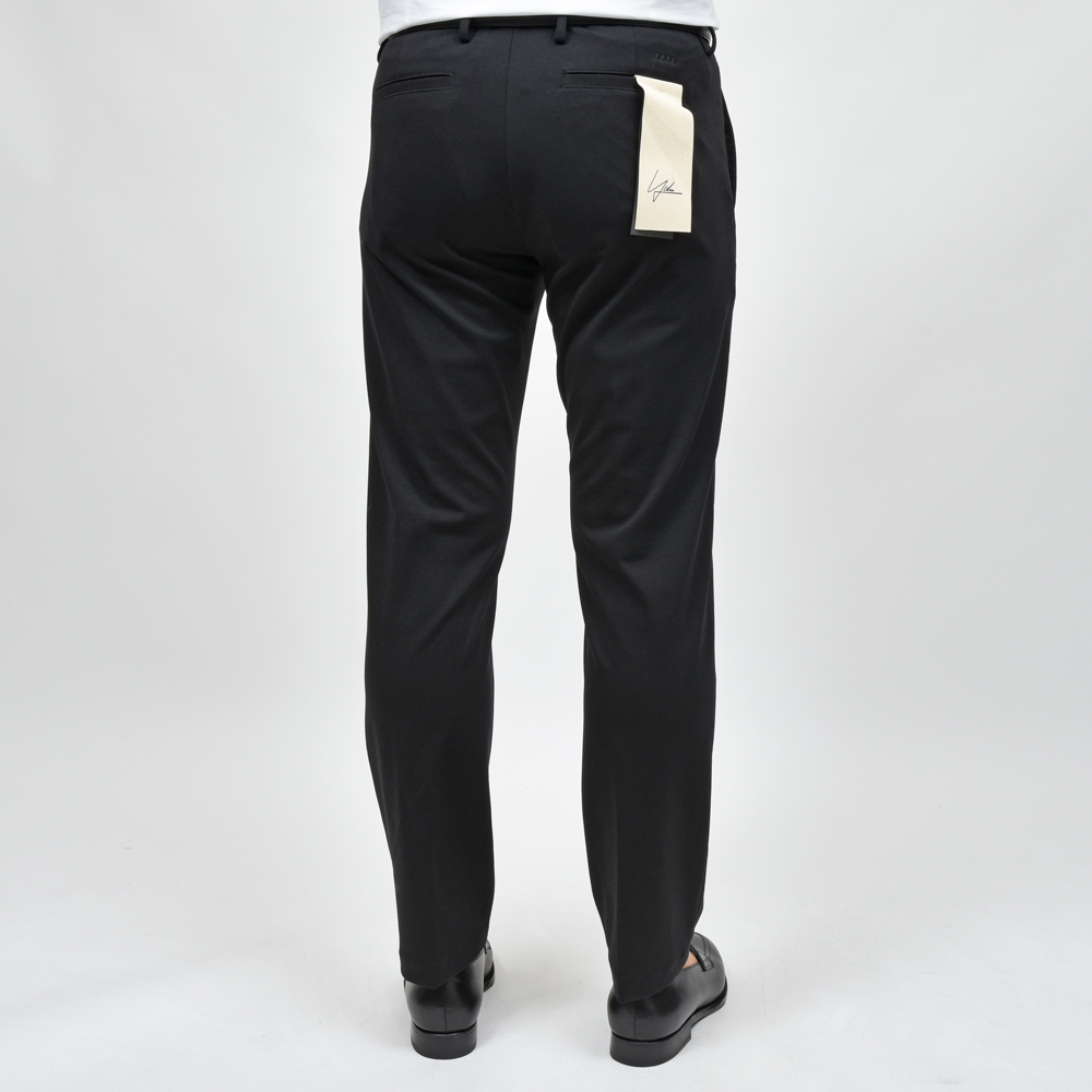 シルエットが直線的で足がスラリと見えますし、キックバックの強いジャージ生地なので型崩れなく、長く穿いていただけます。