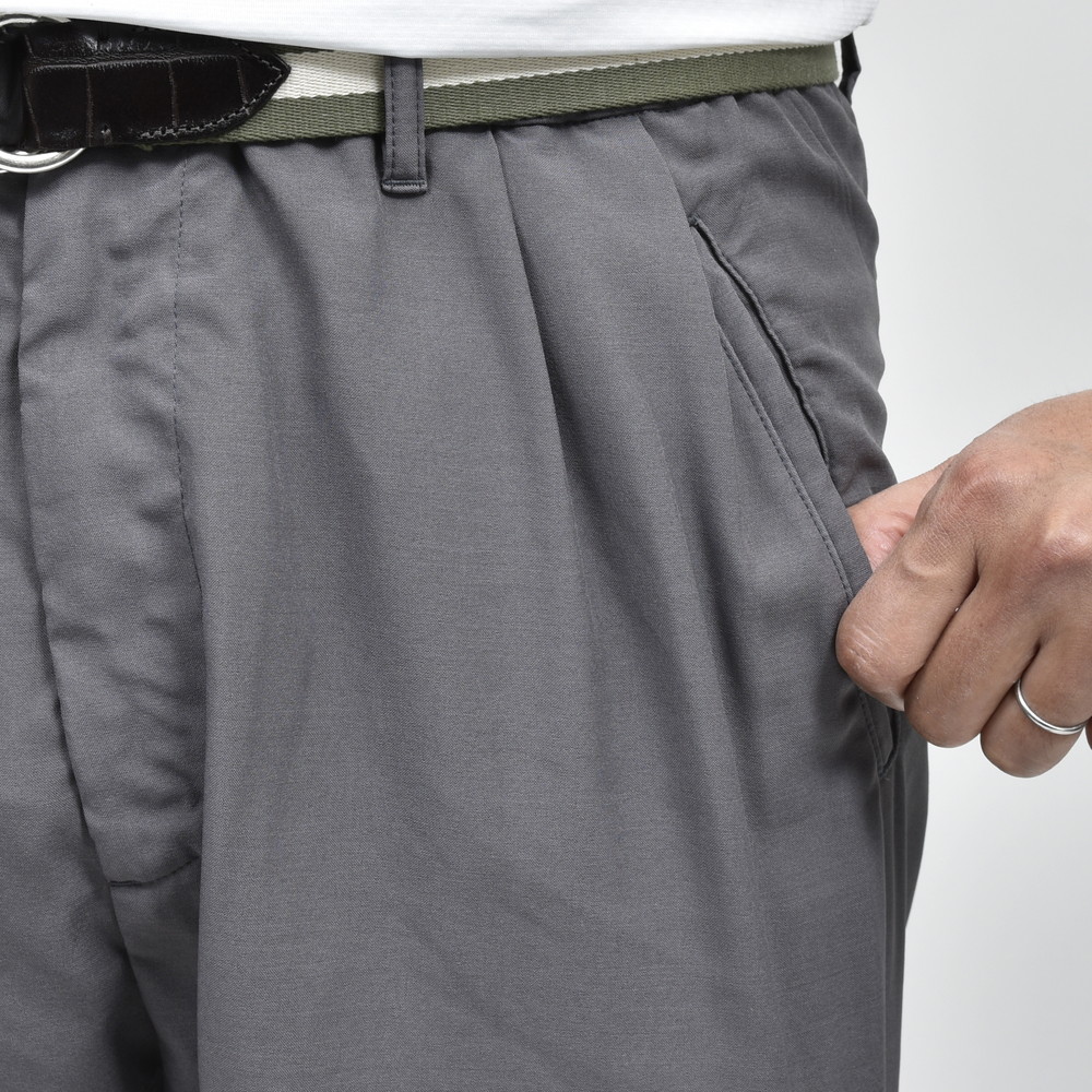 裾のターンナップや2プリーツ仕様、サイドシームレスで丸みを帯びらシルエット構成など通常のmandoコレクションから踏襲されたディティールがゴルフウェアとは思えないムードを漂わせています。