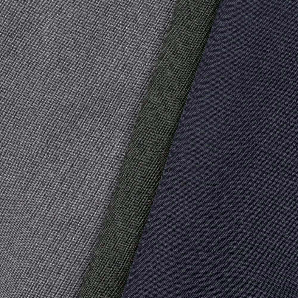 ウールのような上品な表情をもつポリエステル100%素材を採用し、見た目は洗練、着心地は快適。