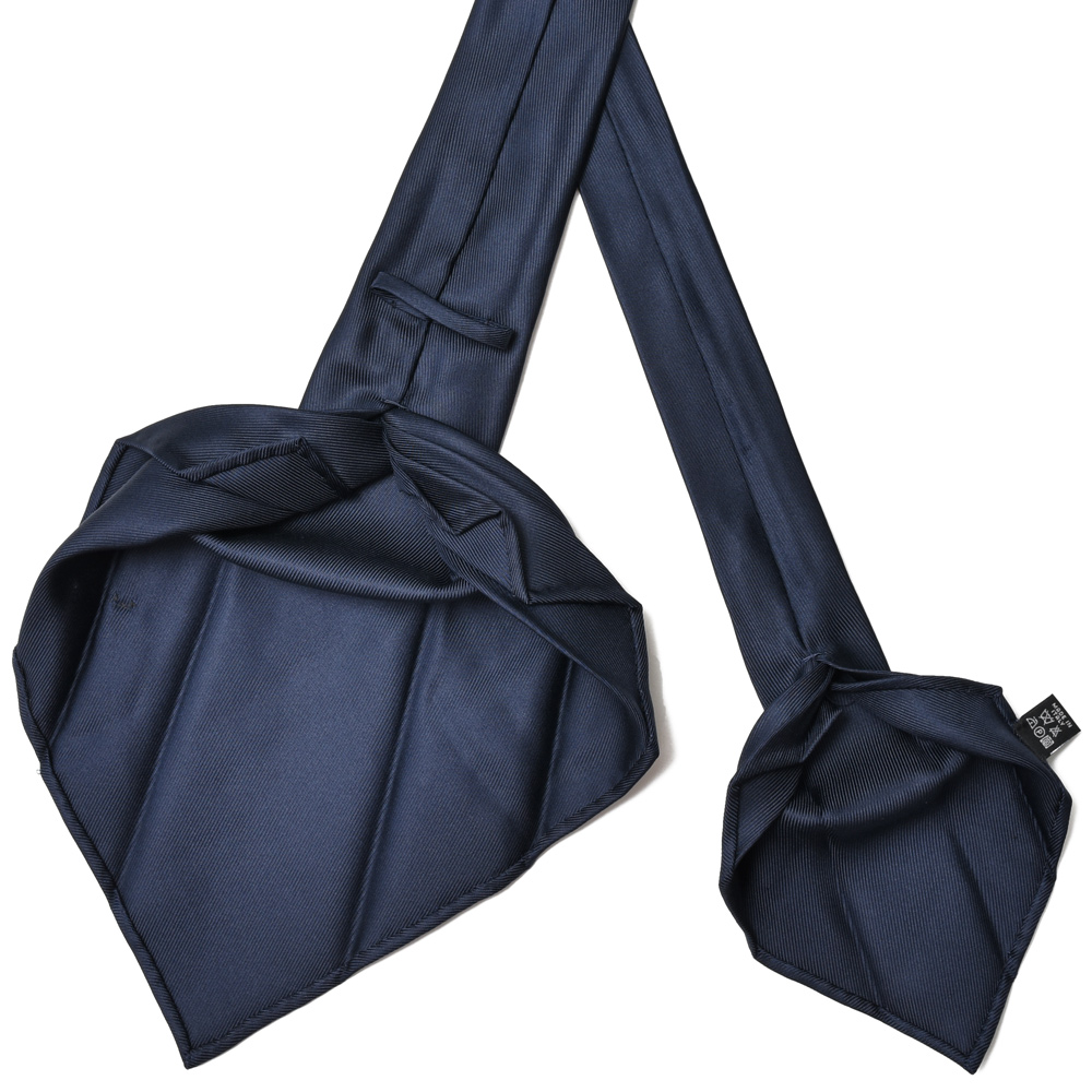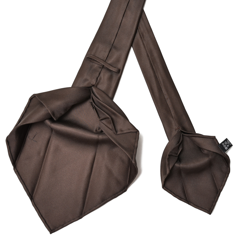 芯地を使わず、熟練の職人が生地を七つに折り重ねることで、一枚の布から一本のネクタイを仕立てる技法を指します。