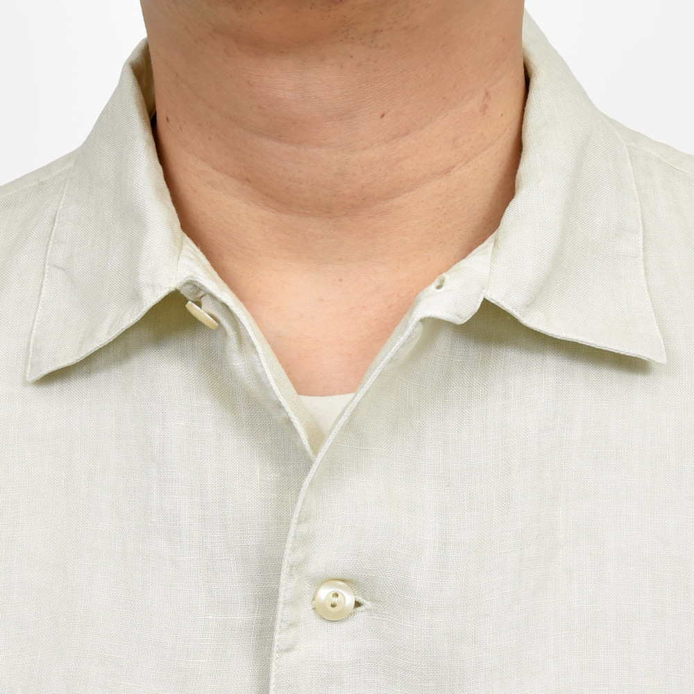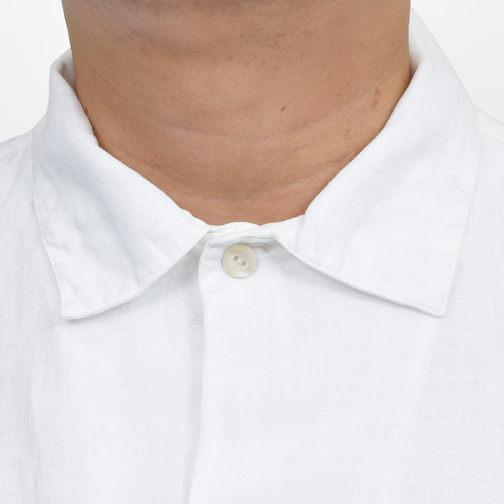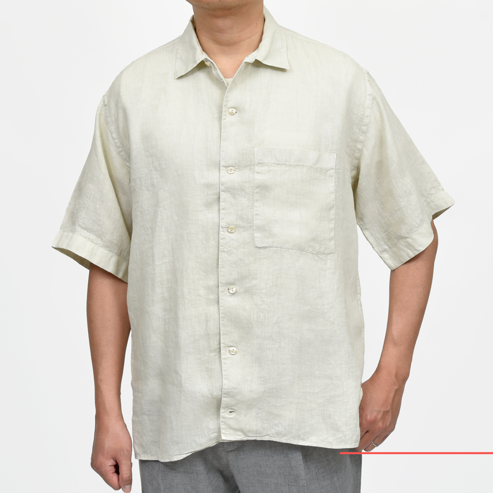リネンの風合い、ゆるりとしたシルエット、襟のバランスなど、大人が上品さを損なわずに着られるリラックスシャツとして非常に出来が良いモデルかと思います。