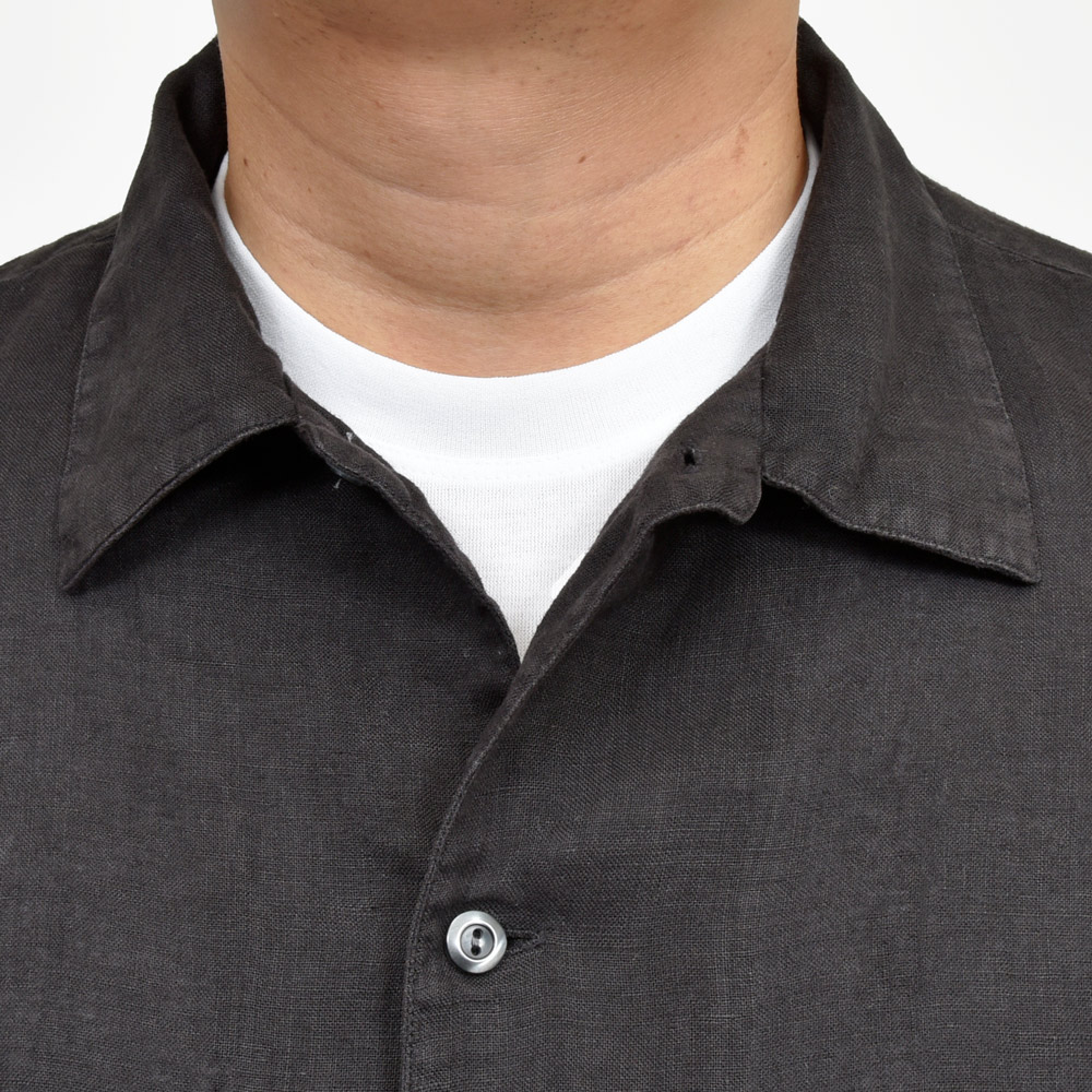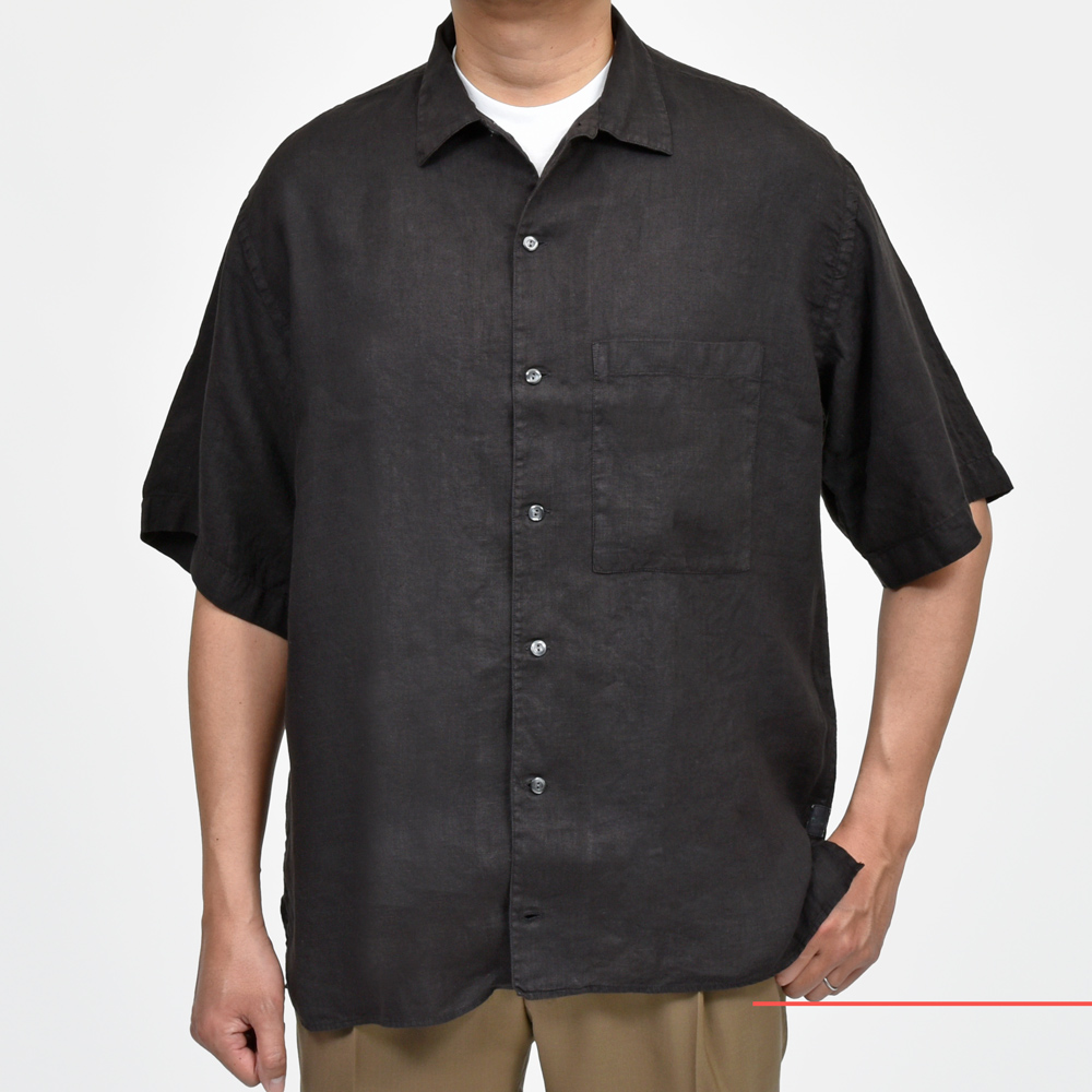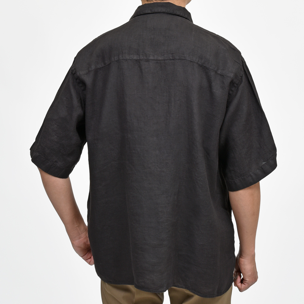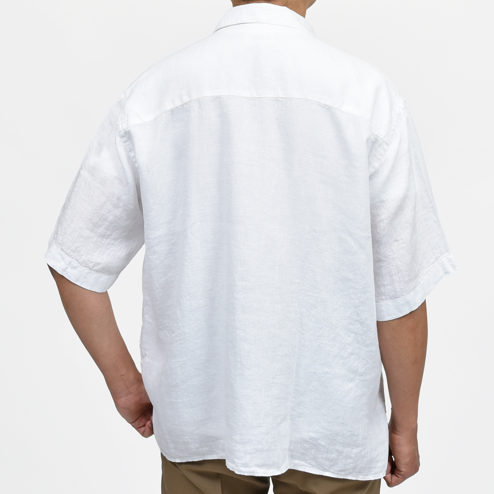 リネンの風合い、ゆるりとしたシルエット、襟のバランスなど、大人が上品さを損なわずに着られるリラックスシャツとして非常に出来が良いモデルかと思います。