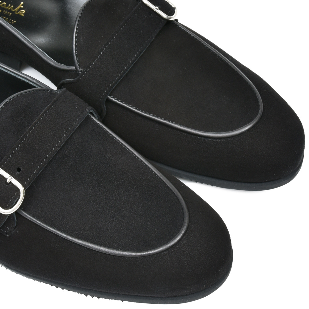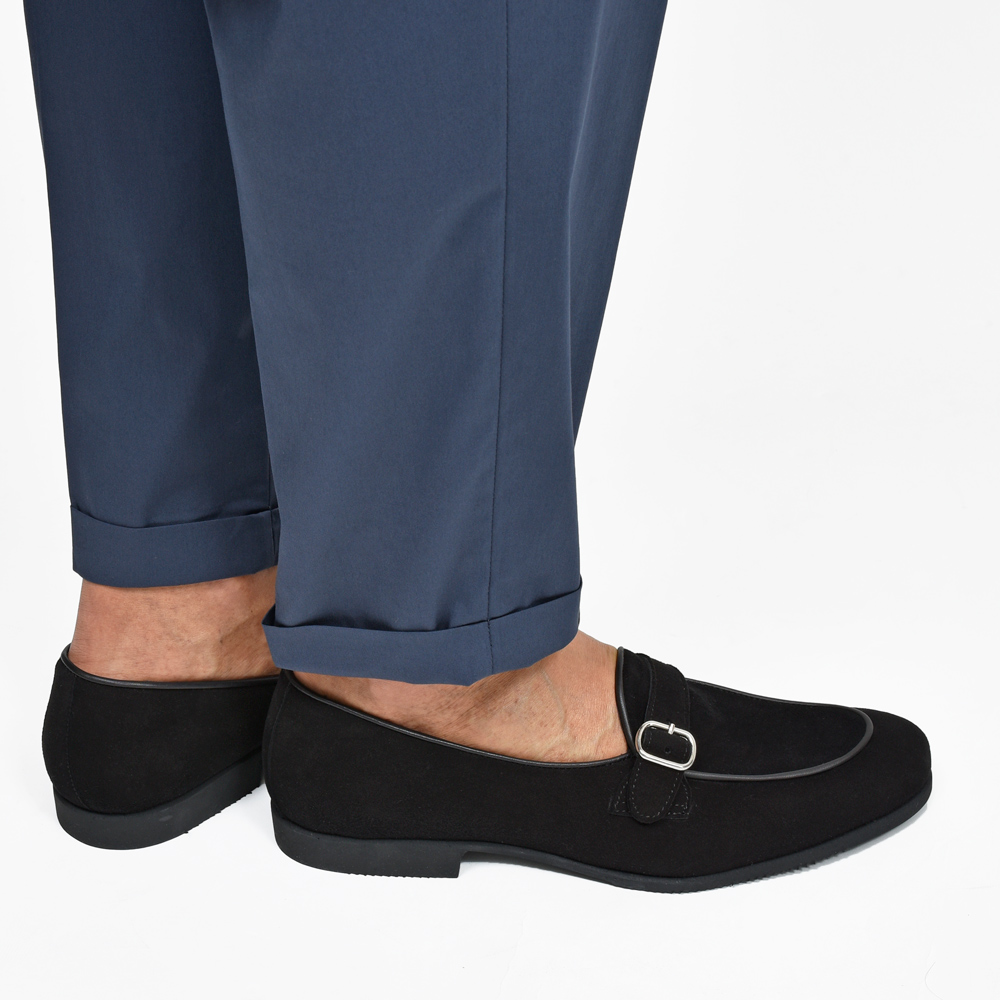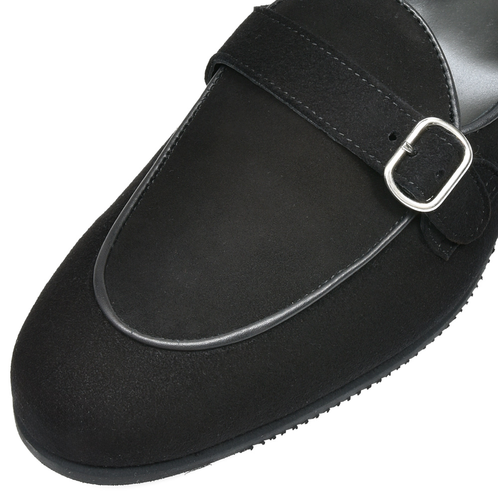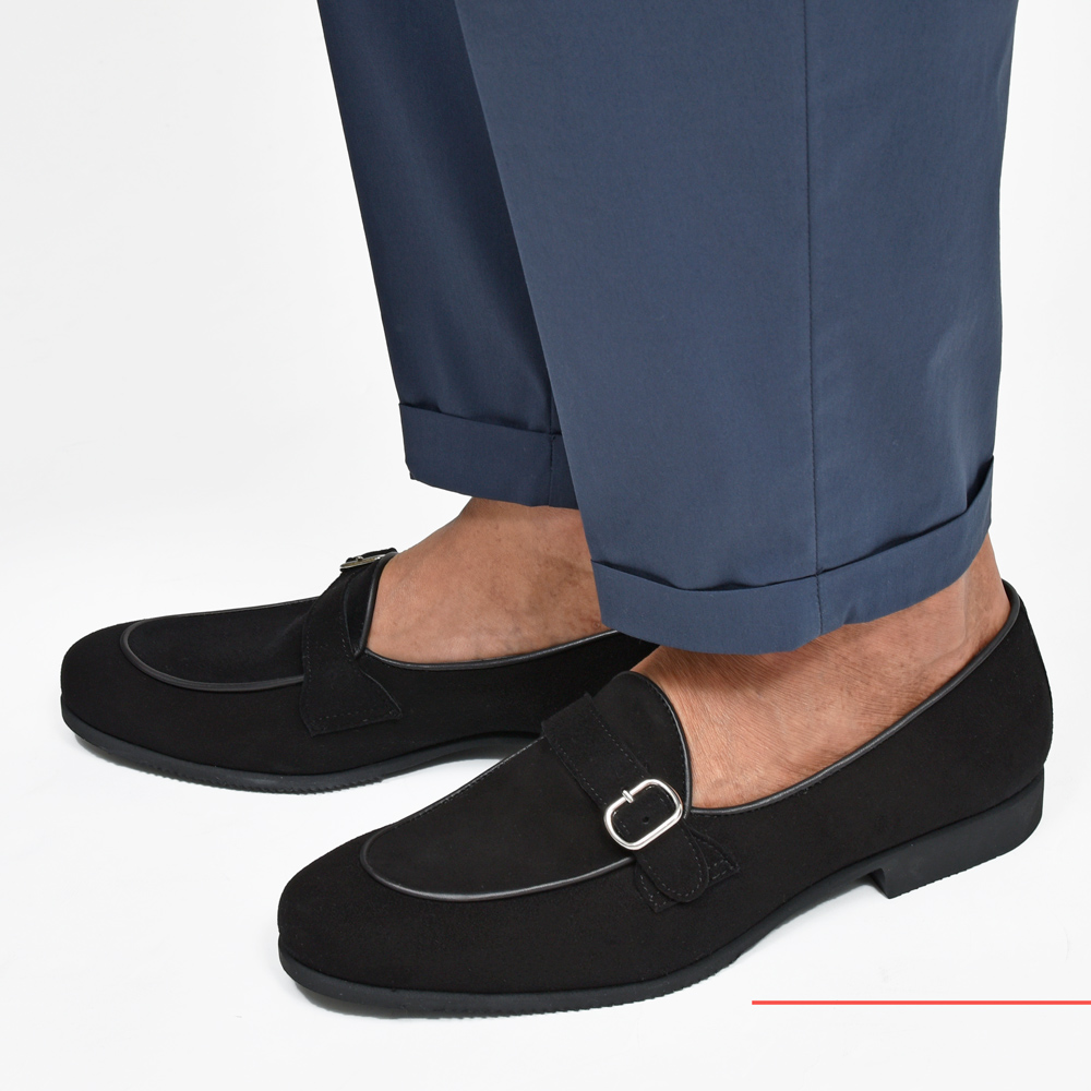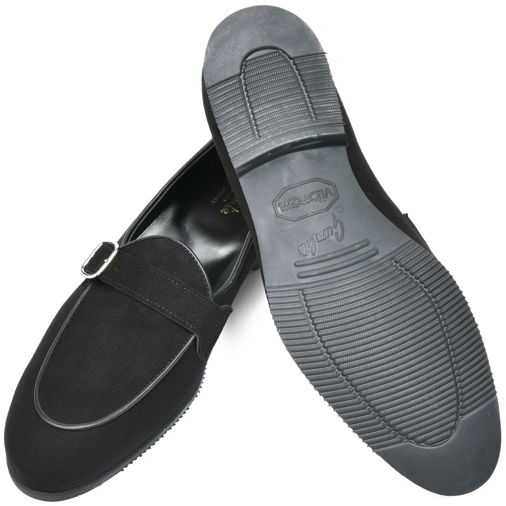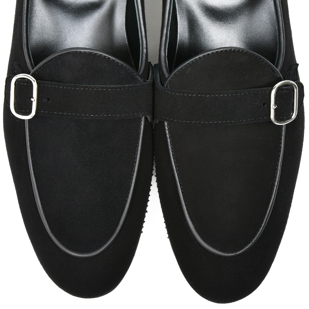 ステッチを目立たせず、すっきりとした見え方に整えつつストラップでアクセントがつけられており、キリッとした仕上がりが特徴的な一足ですね。
