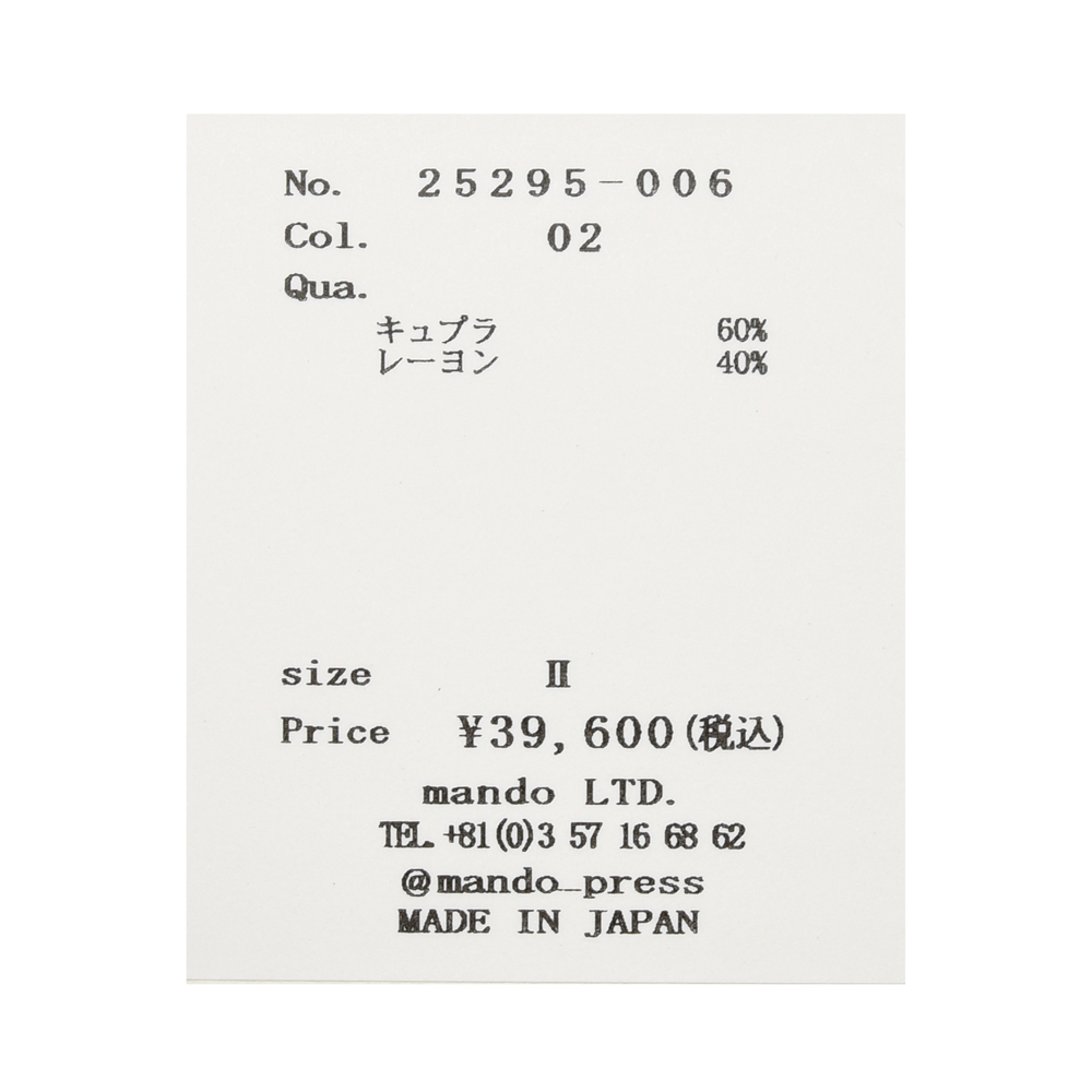 クラシックな雰囲気を感じさせる一着になっていまして、manndoらしさあふれる仕上がりになっている印象です。