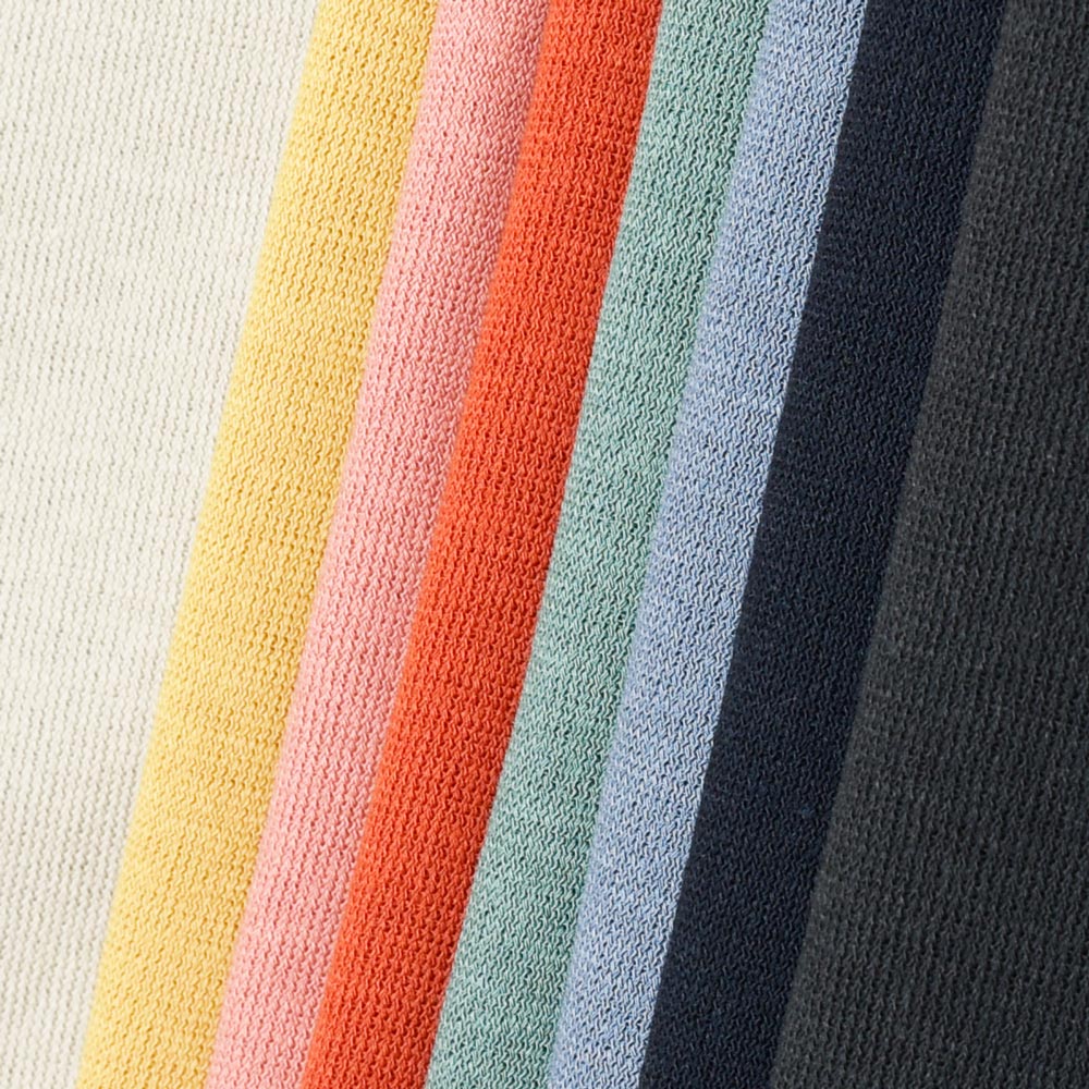 多くのブランドのカットソーはポリエステルやポリウレタンを加え、付加価値を持たせたものが多くなっています。