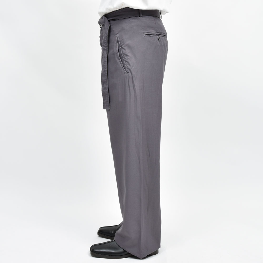 サイドシームレススタイルは継続されつつ、ディティールやシルエットに変化をつけて提案されているパンツシリーズ、今回はベルト付き、ノープリーツ仕様です。
