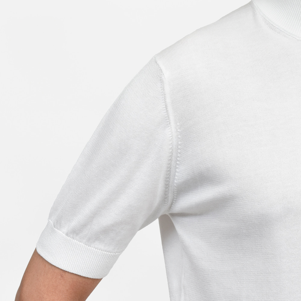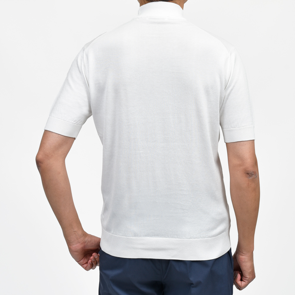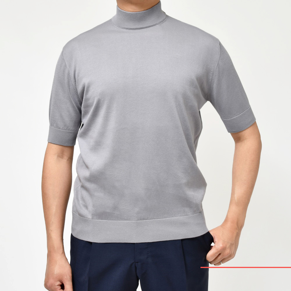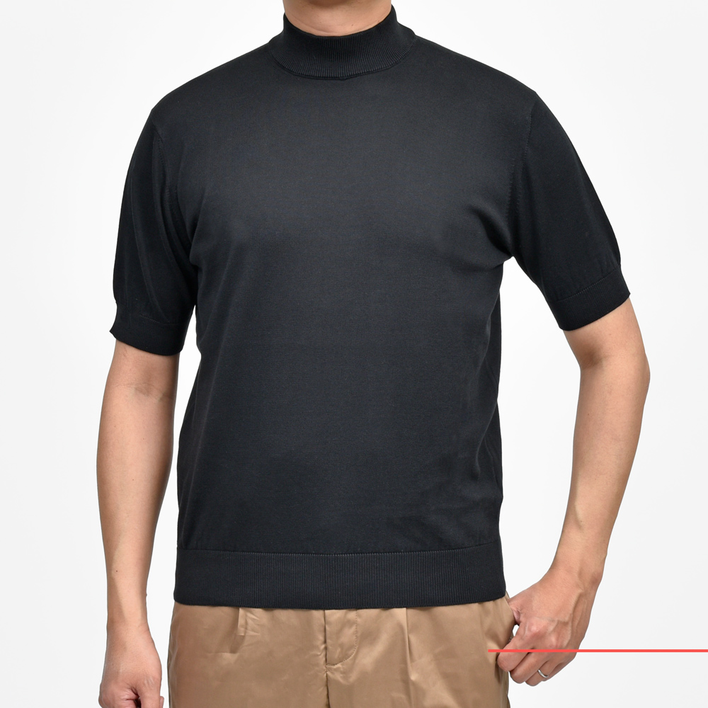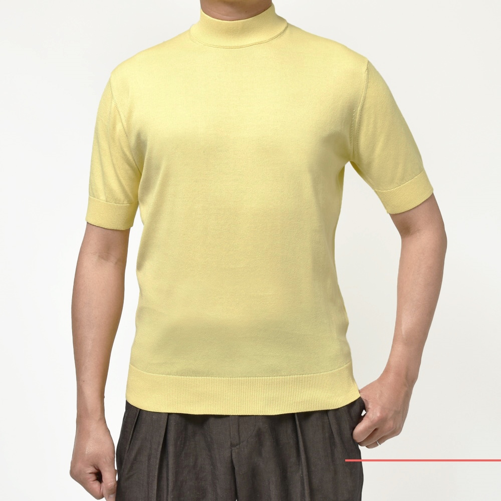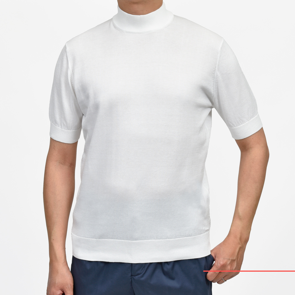 FILIPPO DE LAURENTIIS(フィリッポ デ ローレンティス)の半袖モックネックニット、ギザコットンを用いたシンプル&上質な仕上がりで、さまざまなスタイルに合わせられる汎用性を備えています。