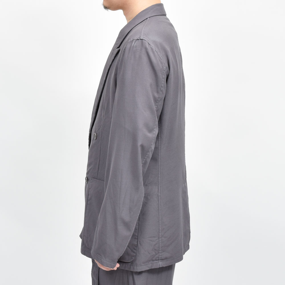 ダブルならではの荘厳さはなく、自由な気風を感じさせるようなムードを纏ったジャケット。さらりと着流すぐらいの感じが最もしっくりくるのかなという印象です。とはいえ、いわゆるテック寄りのシャカシャカジャケットとは異なり、テーラーリングを得意とするブランドならではの品の良さを持っています。