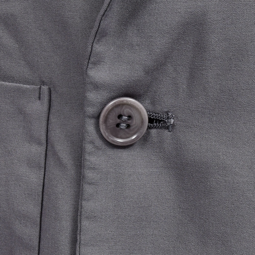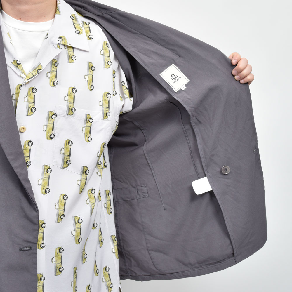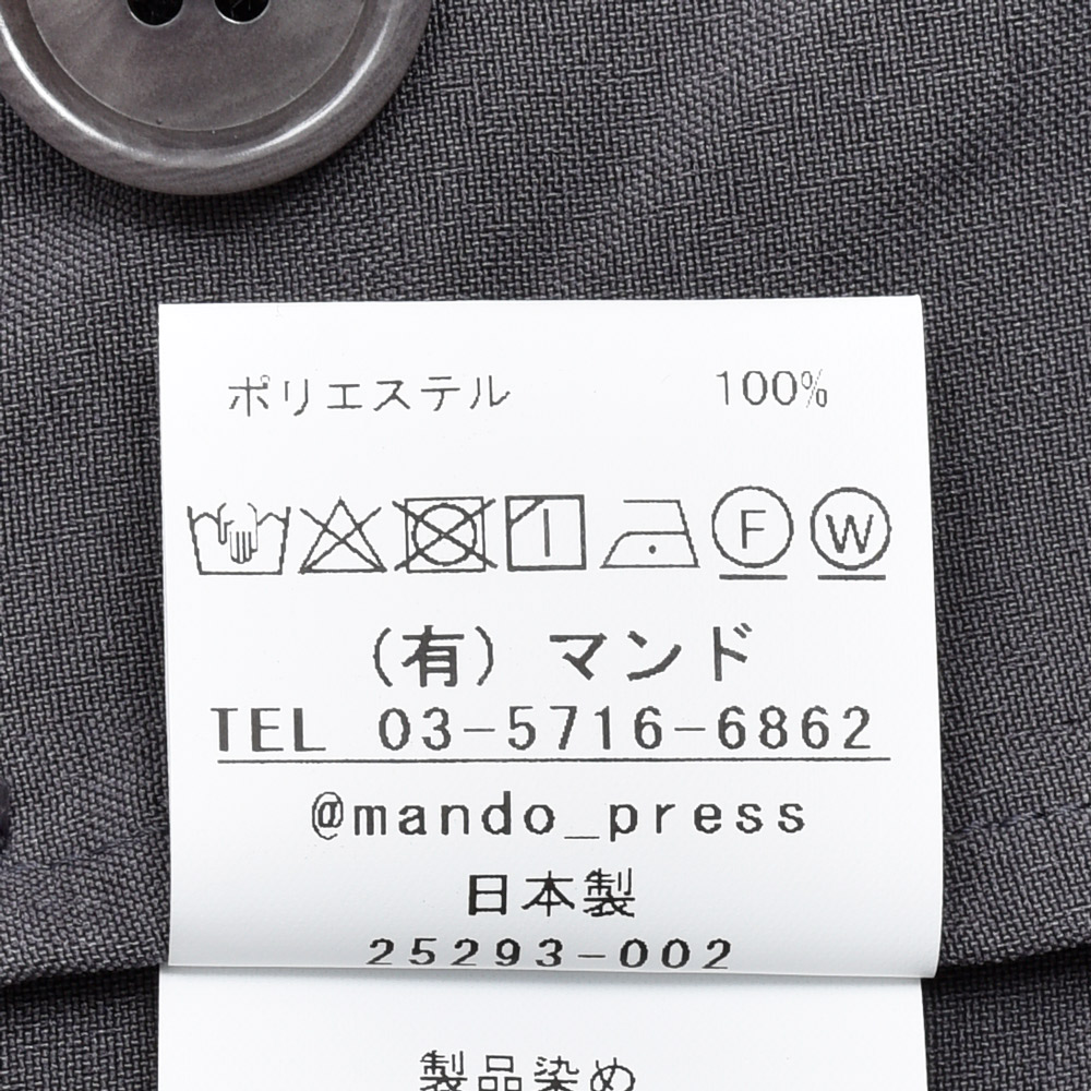 軽くサラッとカジュアルに着用できるmando(マンド)のジャケット、ブランドにおける定番生地を採用していまして、ガーメントダイを施し少し褪せたような色合いのポリエステルを使用しています。