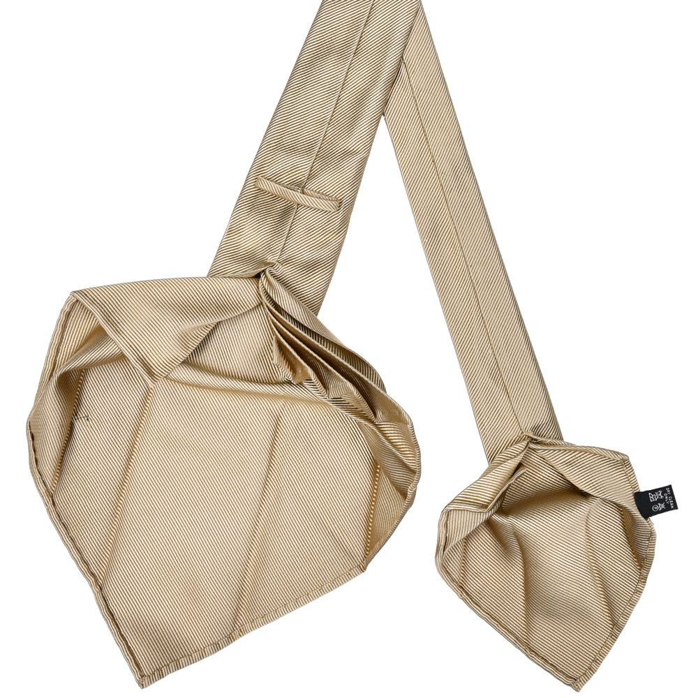 芯地を使わず、熟練の職人が生地を七つに折り重ねることで、一枚の布から一本のネクタイを仕立てる技法を指します。