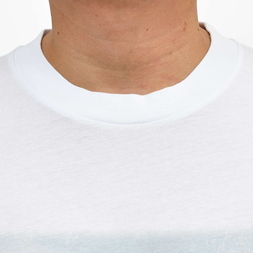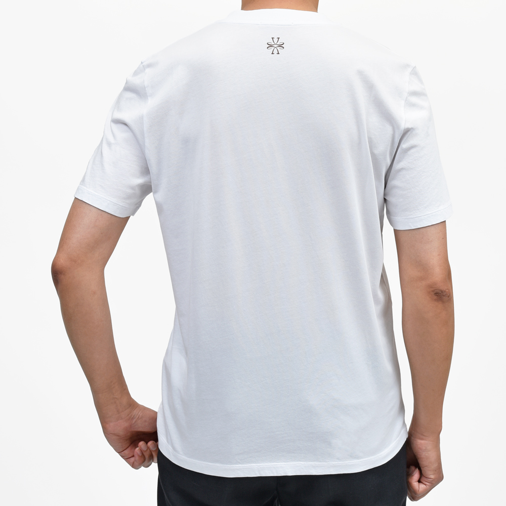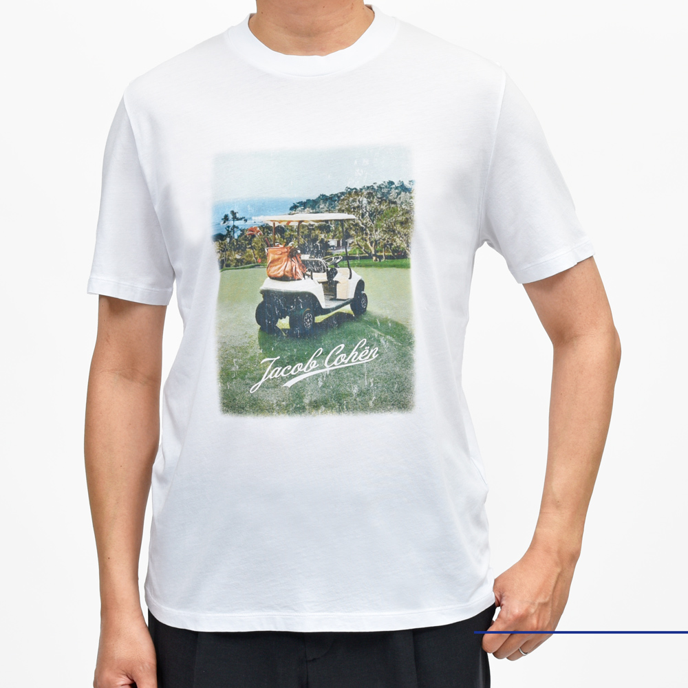 大きめのプリントですが主張が強く見えすぎない絶妙なバランスなのでこれ1枚でも重宝しますし、インナー使いで前が開くタイプのジャケットやブルゾンとも相性が良さそうです。形としてはスリムなタイプで、JACOB COHENのデニムとの組み合わせは全体のラインが綺麗に整いシルエットの流れが美しくまとまるのでスマートな印象に落ち着くかと思います。