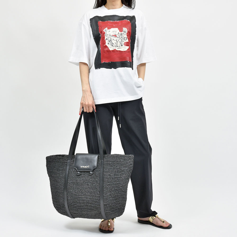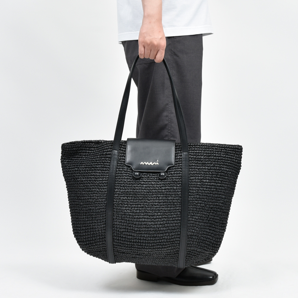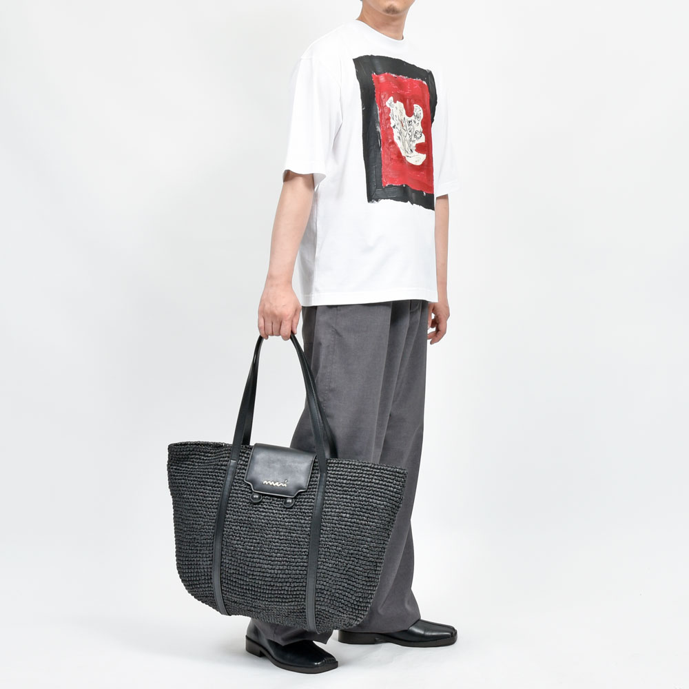 クールなかごバッグ的な感じでストリート色があり、リゾーティーなムードもキープされている、MARNIらしい雰囲気が印象的なバッグです。しっかりとレザーを用いることで高級感も高められていて、単なるリゾートバッグでは終わらないクリエイティブ感があります。