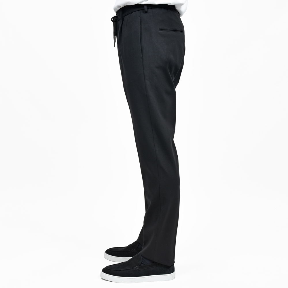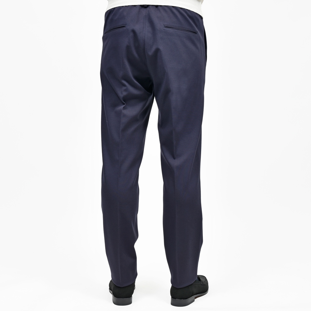 ウエストシャーリングタイプのパンツでして、それだけ聞くとカジュアル?スポーティ?という印象を抱きますが実際の見栄えはそうではなく、ビジネスにも対応できるようなクリーンな面構えを備えてるという感じです。