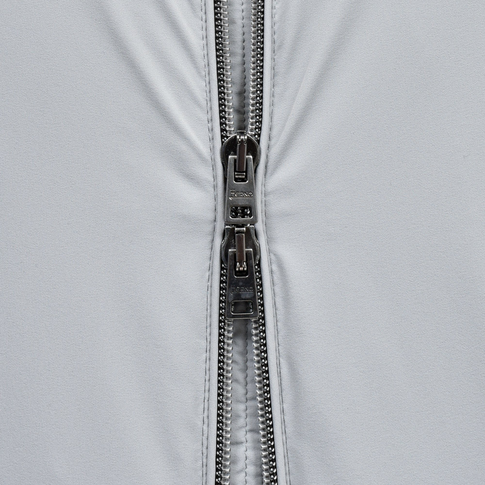 ナイロン系のジップフーディーは光沢が強かったりタッチがシャカシャカしているとスポーツアイテムのイメージが強くなります。