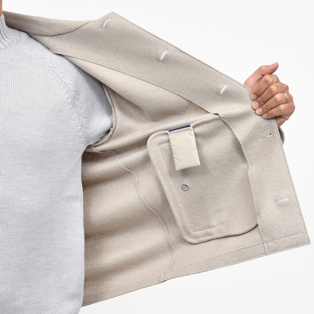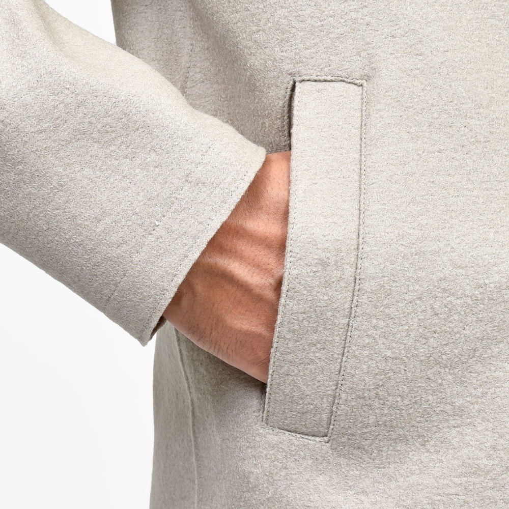 さらりと着られてとても上品なライトアウターは少し起毛感のあるしなやかなフェルテッドウールを使用。