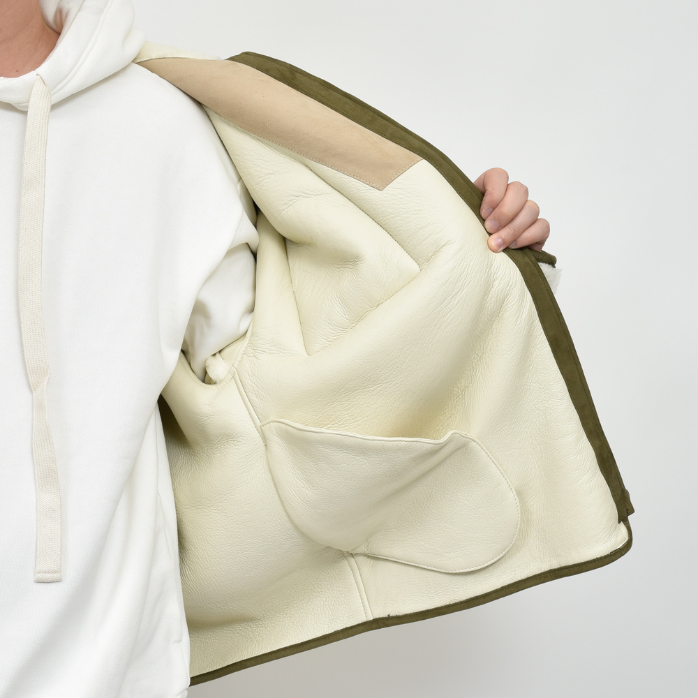 サッと羽織れるように軽めに作られているのも嬉しいですね。しっかりとしたムートンは重くて暖かいんですが、そこまでシビアな防寒性はもはや求めていませんので、気軽に軽く着られるほうが結果長くご愛用頂けると思います。