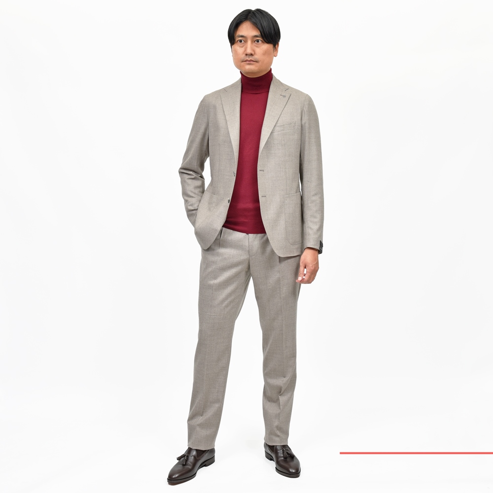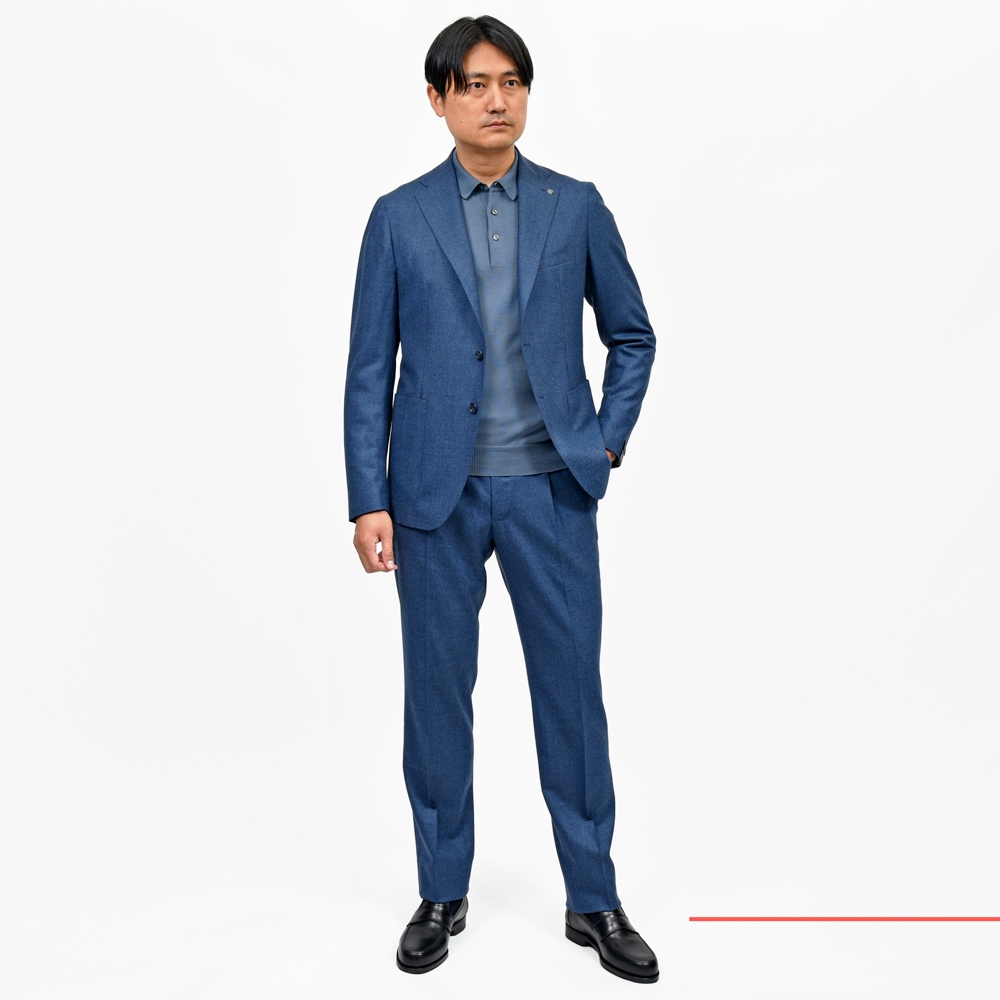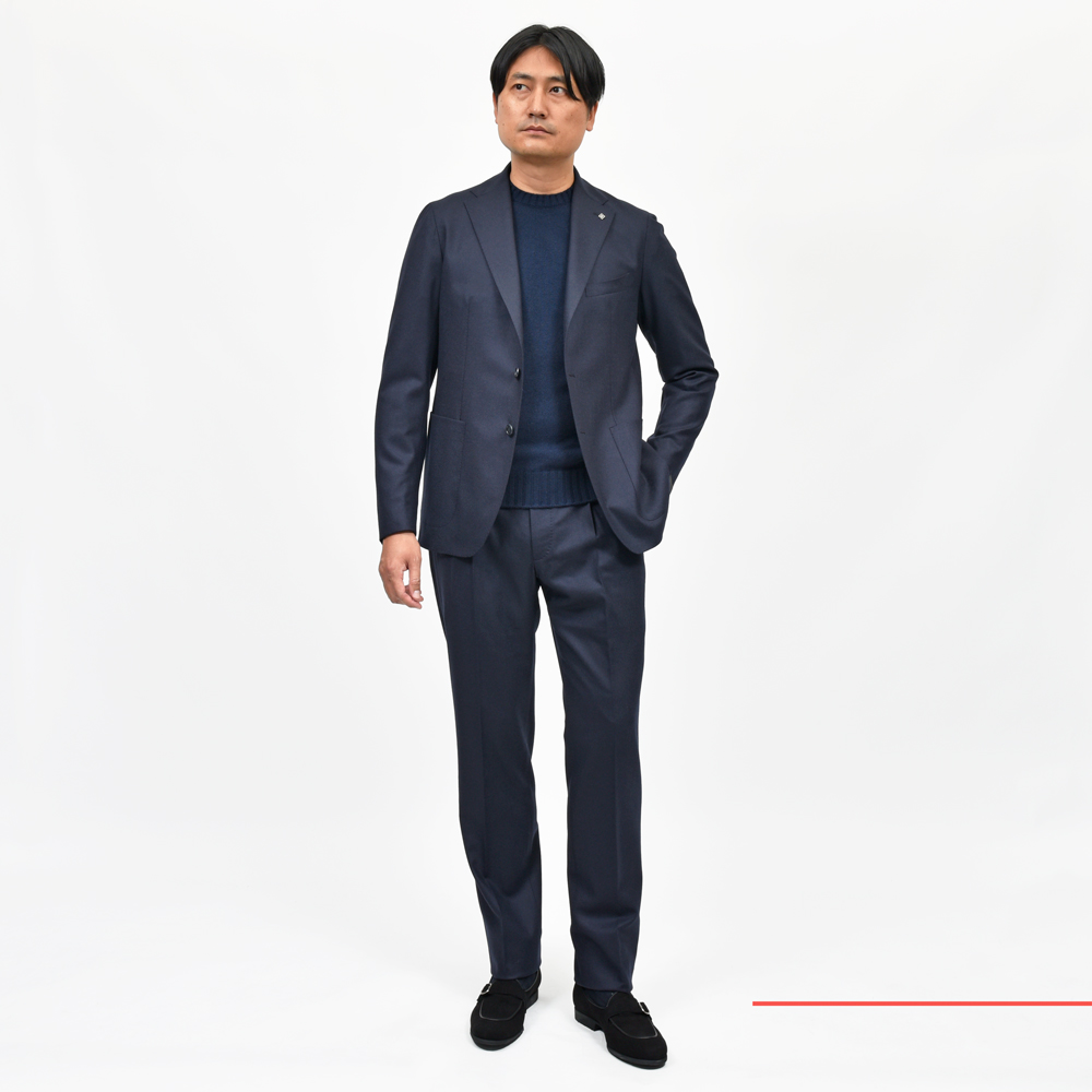 しっかりとしたウェイトのフランネルも素晴らしいんですが、ブランド自体が「軽さ」を追求していることからこちらの様なライトなサキソニー生地がとても仕立てにフィットします。