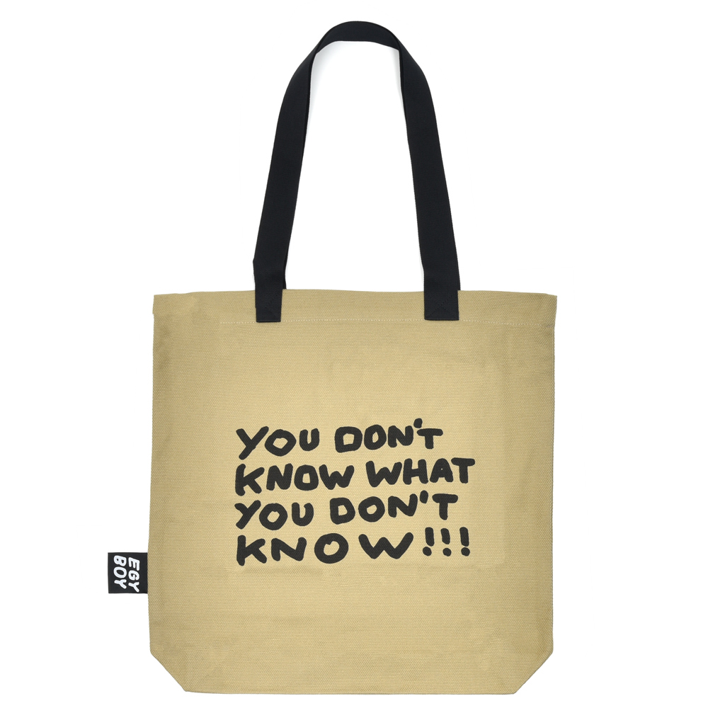 EGYBOY(エギーボーイ)といえばメッセージ性のあるプリントですが、今回はTシャツではなくトートバッグで表現されています。