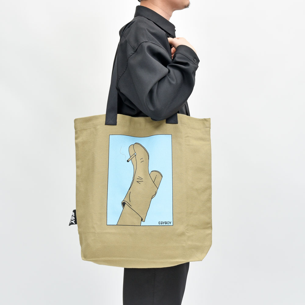 EGYBOY(エギーボーイ)といえばメッセージ性のあるプリントですが、今回はTシャツではなくトートバッグで表現されています。