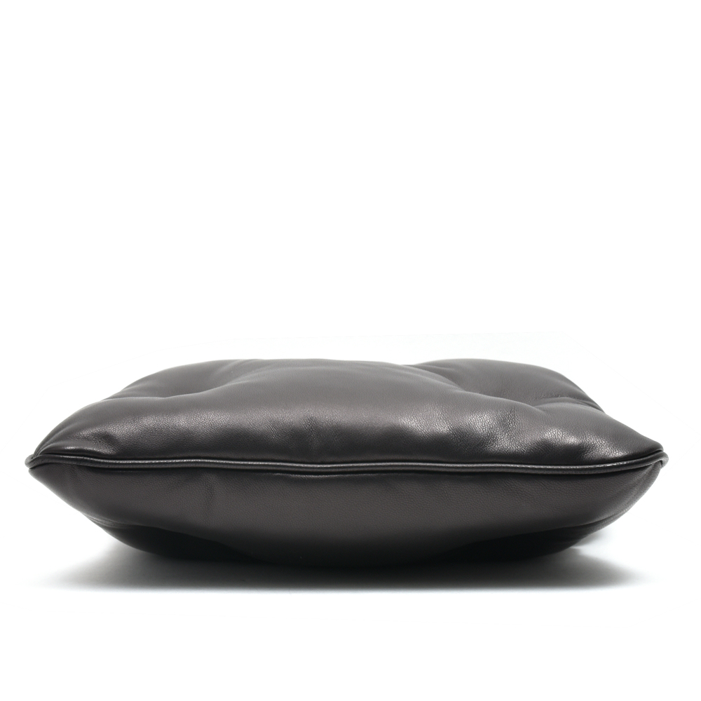 サイズ感としては所謂ミニショルダー的なものになっていますが、しなやか且つ鈍い光沢感を持つナッパレザーを採用することによって高級感を極限にまで高めている印象。公式にはフラップポケットバッグという名前になっていまして、実際に背負ってみると確かにアウターの1ポケットのような感覚があります。