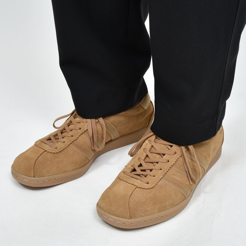 スッキリ見えるところがこのジャンルのスニーカーの特徴で、トゥの丸みやボリューム感はお好みで。TABACCOは少し毛足のあるスエードなので、気持ちラフで軽快なスタイルが似合いますね。