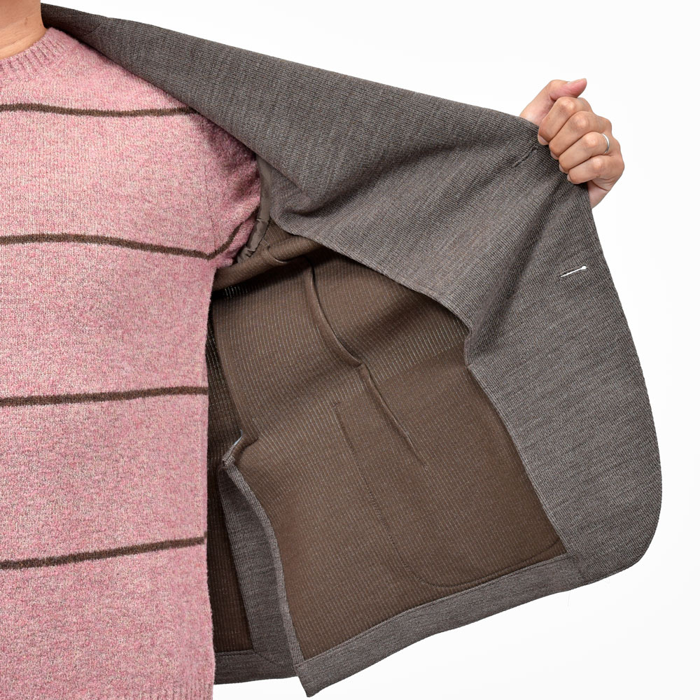 DOVERをベースにしたシルエットであり、副資材を用いずに仕立てるアンコンストラクテッドモデル