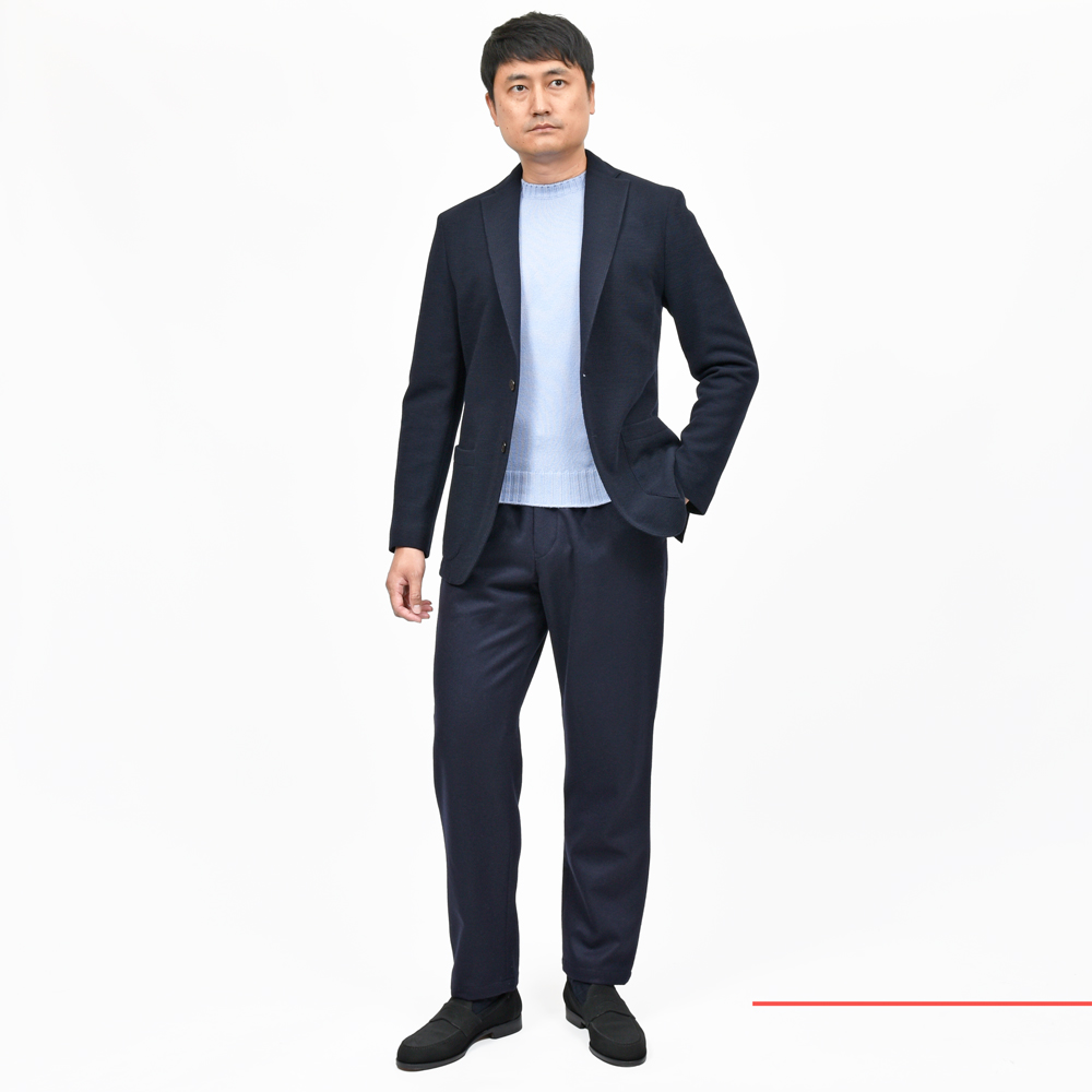 『ジャケットの美しさとニットのコンフォート性、見事に両立されています。』