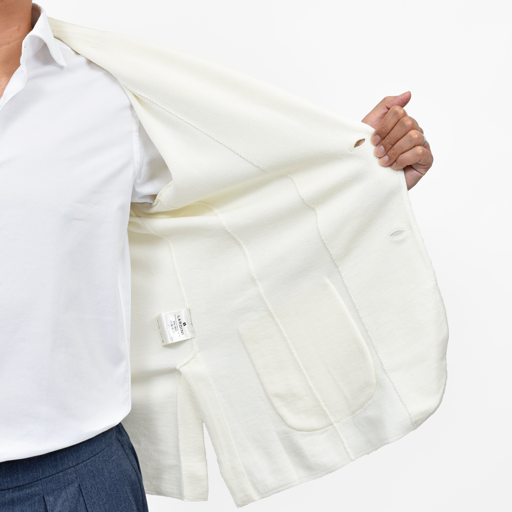 あくまでもニットという範疇は逸脱せずに、ジャケットデザインならではの品格を備えるべく完璧にデザインされているところが特徴で、他のブランドでは実現できなかった細やかで整ったディティールが搭載されています。