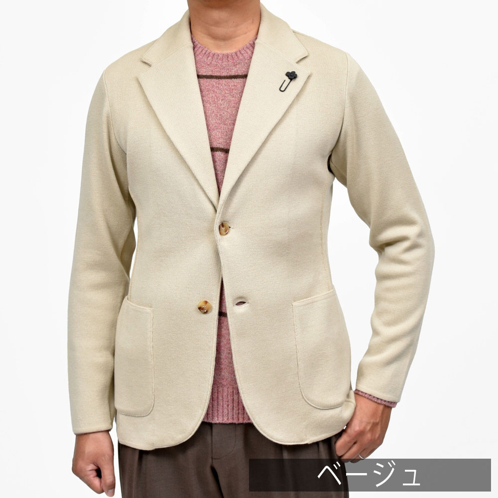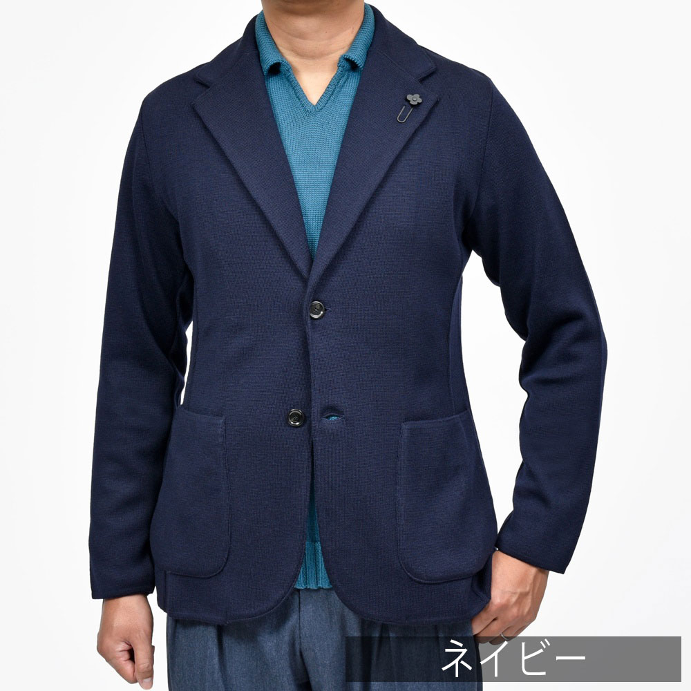 LARDINI=ニットジャケット、というと言い過ぎですがそのぐらい高い人気と実力を兼ね備えたアイテムになっています。いわゆるカーディガンにラペルをつけただけのタイプとは異なる、ジャケット然とした見え方が人気の秘訣かと思われます。