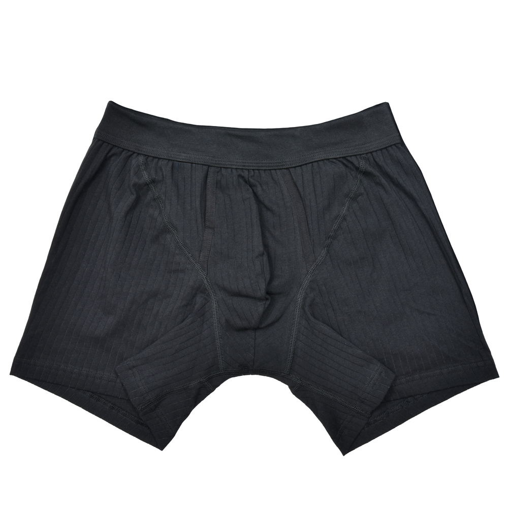 こちらはボクサーショーツでして、シャドーストライプ調の見え方になるよう編み上げられた上質なシングルジャージ生地が用いられています。