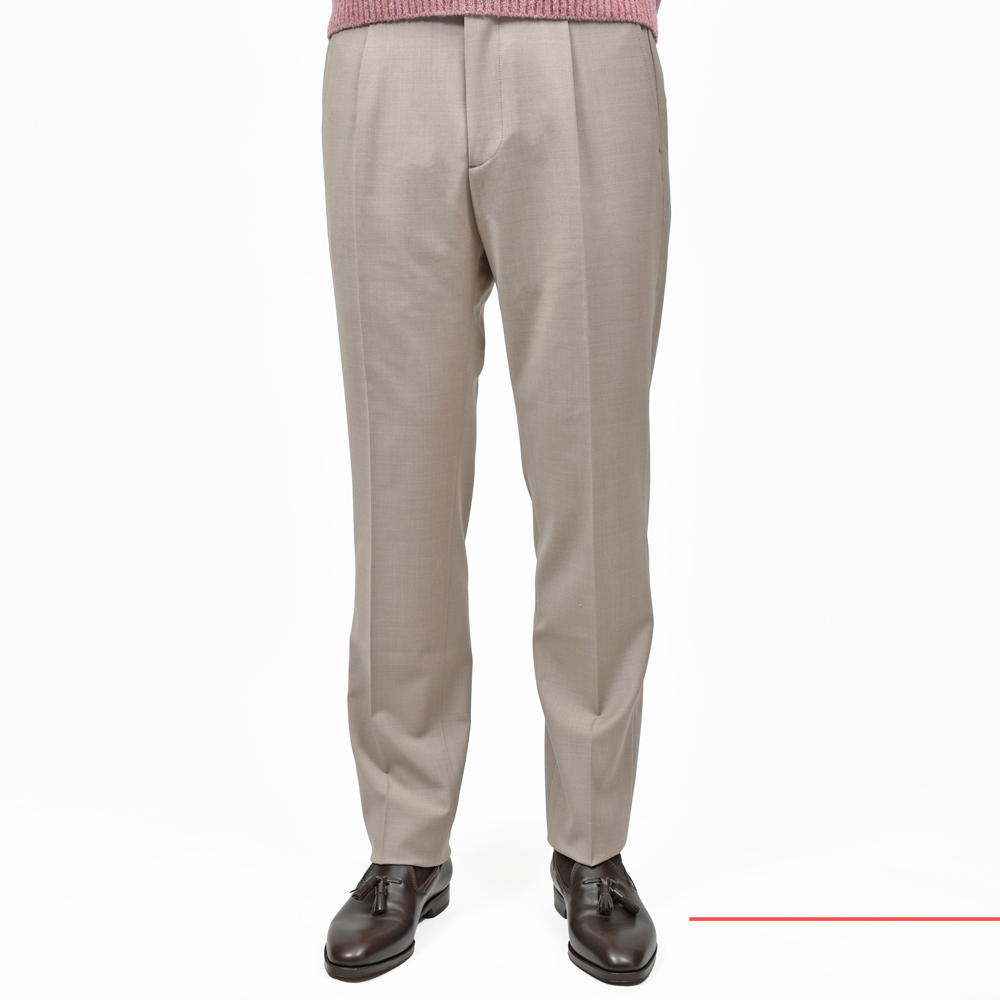 お馴染みのテクノウール、さらりとしたタッチでナチュラルな見え方をキープしつつ、穿き心地の良さとケアのイージーさにこだわった定番ファブリックです。