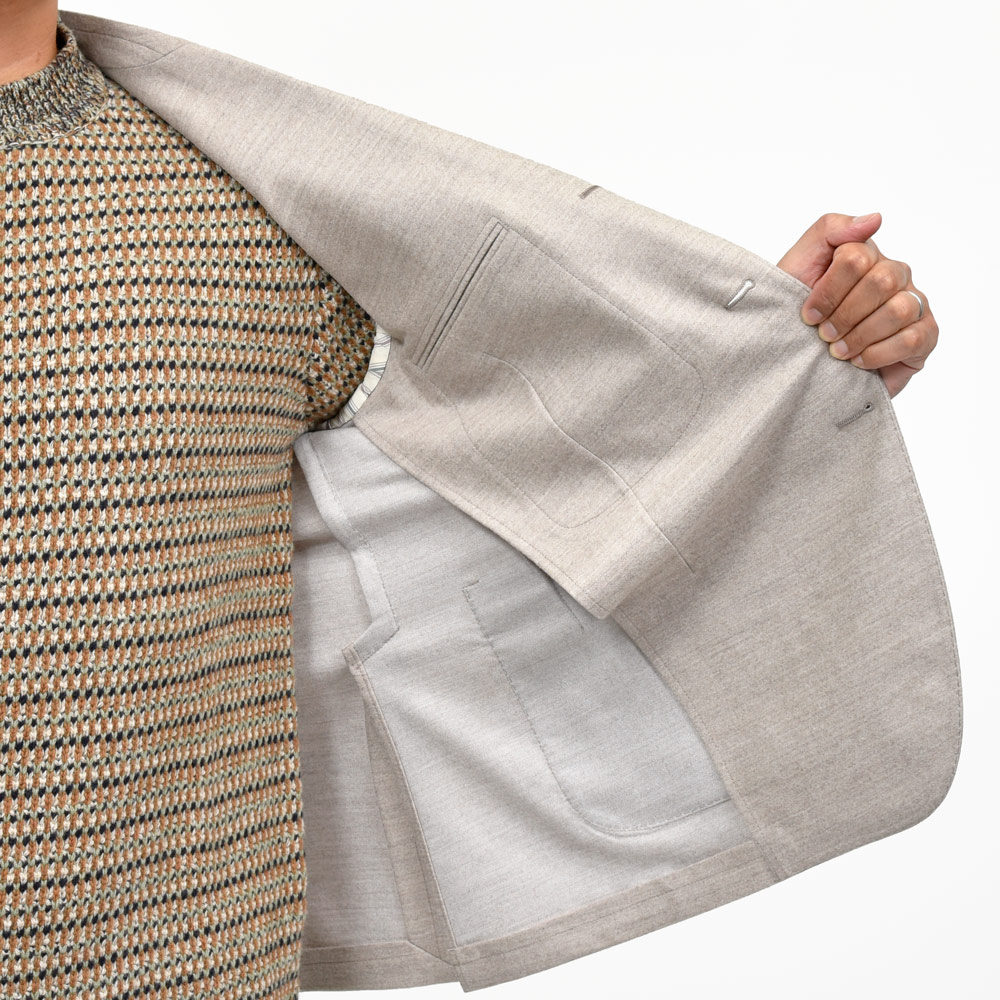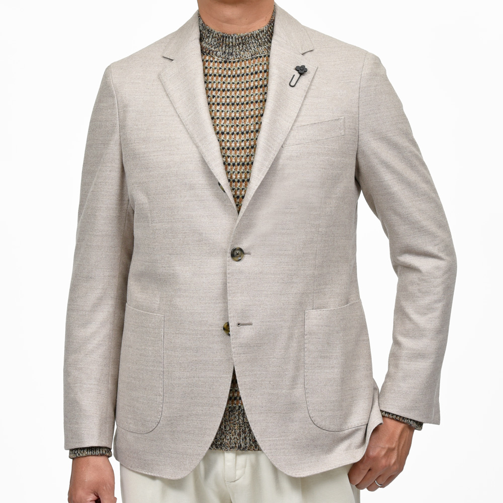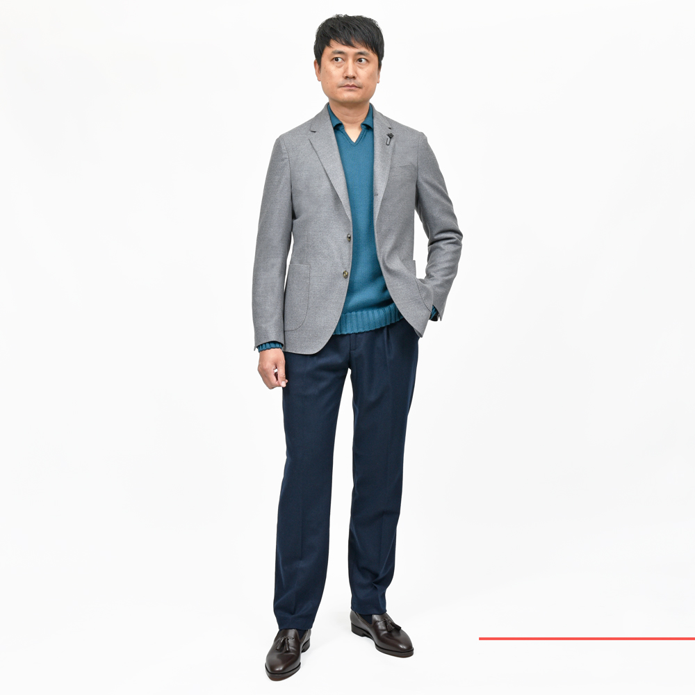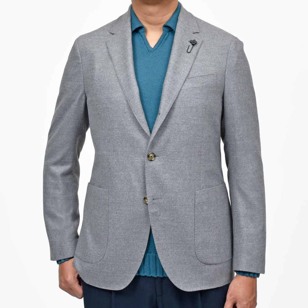 レベルの高いもの同士の共演は素晴らしいショーを生み出す、、、、そんな感じがしてくるLARDINIのジャケット。シンプルに美しいなと思えるウールサキソニーはLoroPiana謹製になっていまして安心感がありますね。