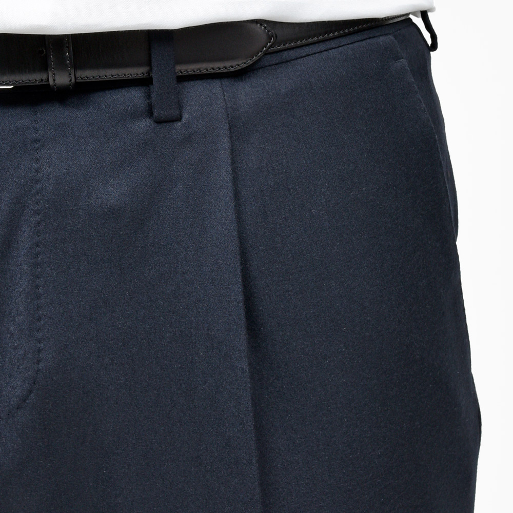 今回の生地はLARDINIが毎年ご用意しているパーマネントファブリックから、ウール×カシミアのストレッチフランネルをチョイス。