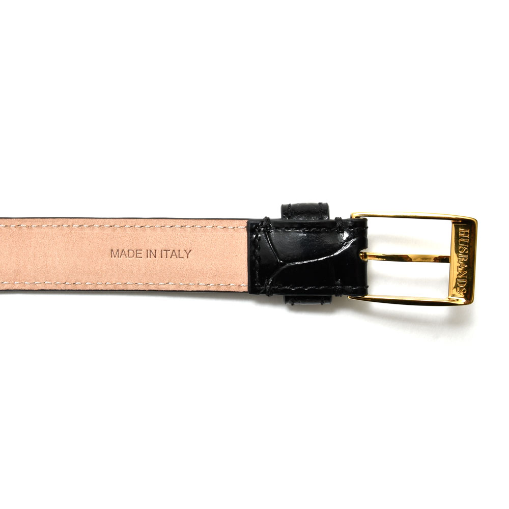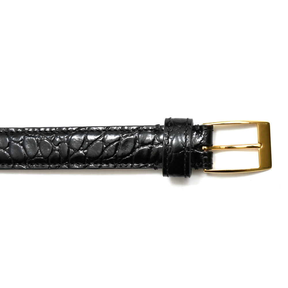 クロコダイルのエンボス加工を施したタイプもチョイスしています。バックルはやや丸みを帯びたスクエア型のゴールドを採用、幅が2cmということもあって所謂エグみみたいなものは皆無というのもポイント。