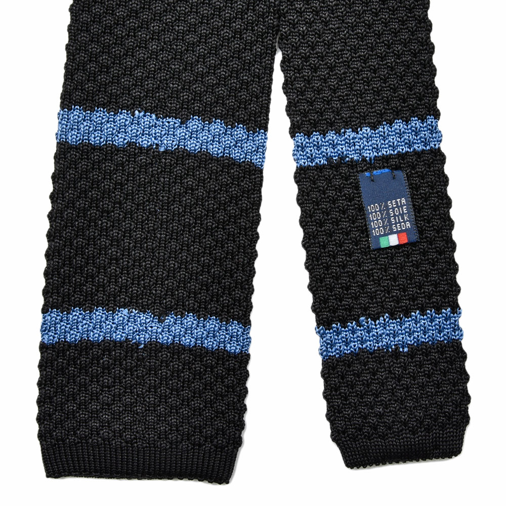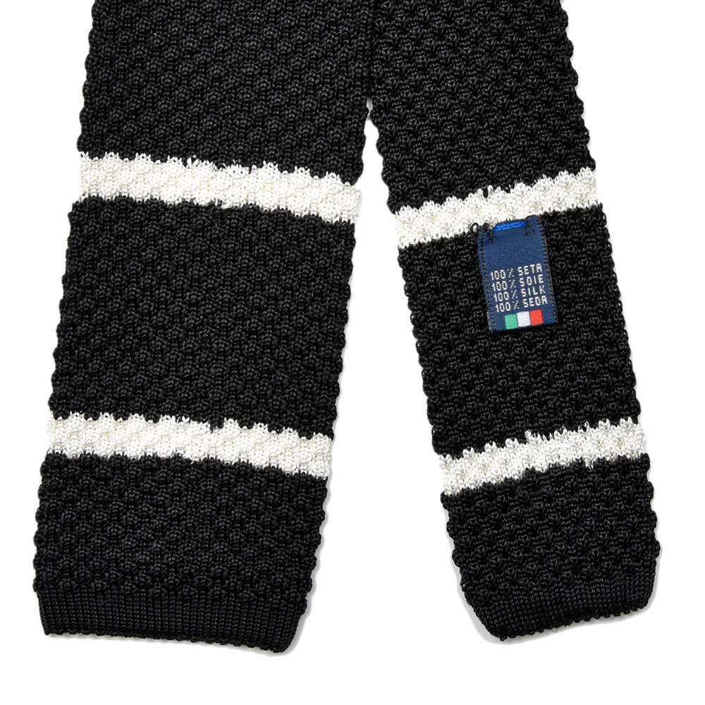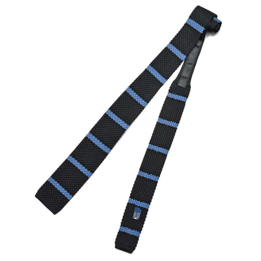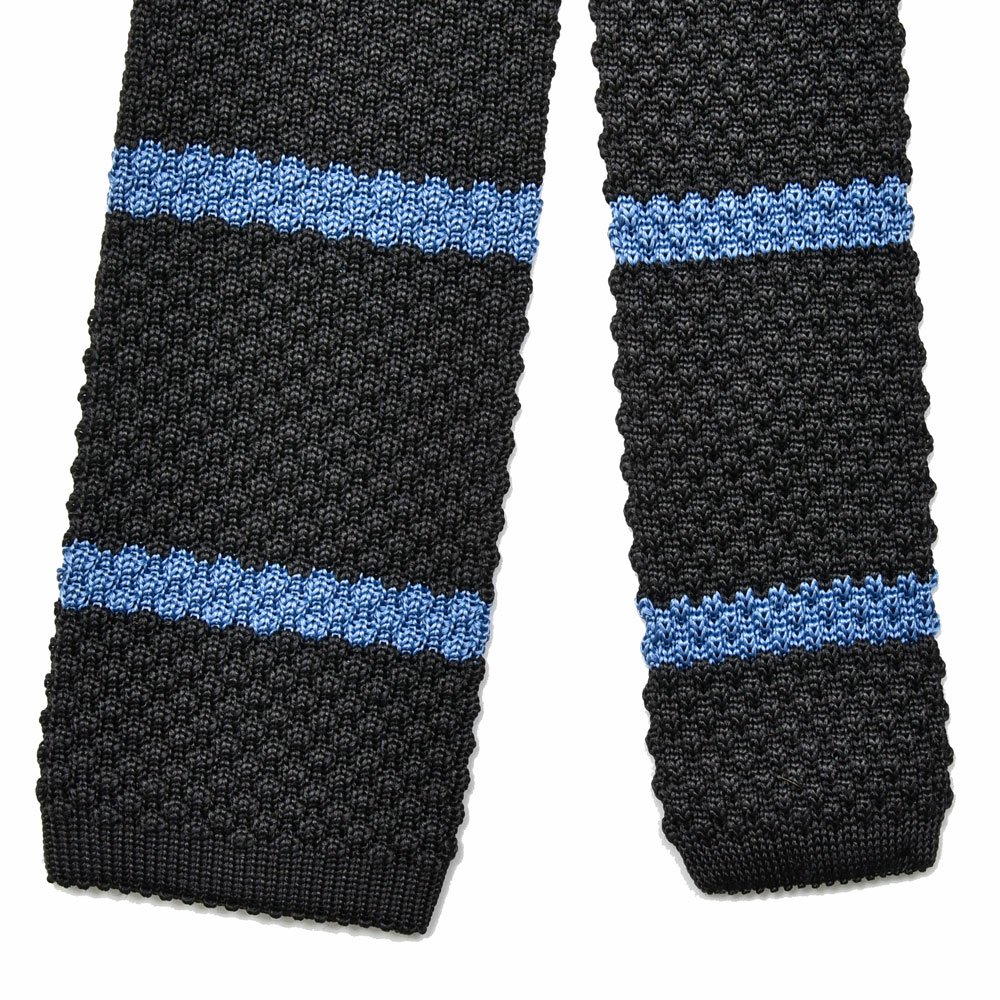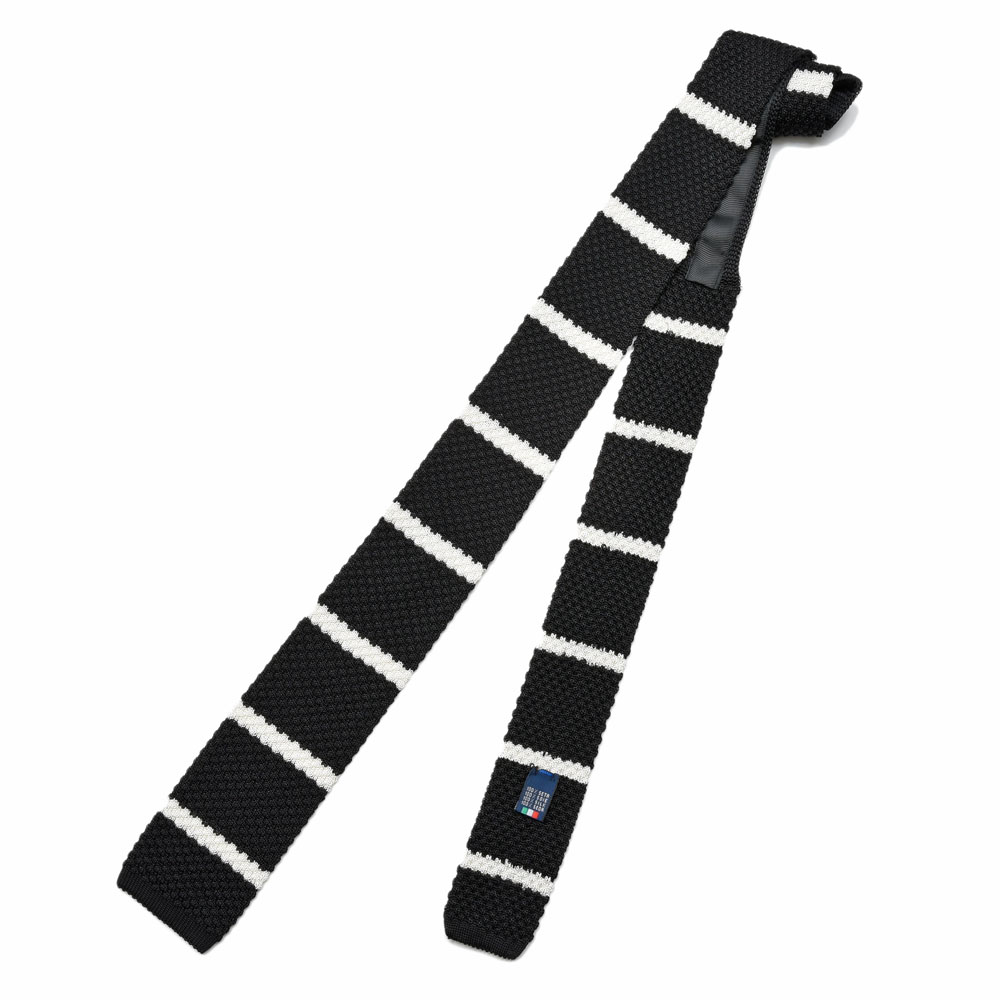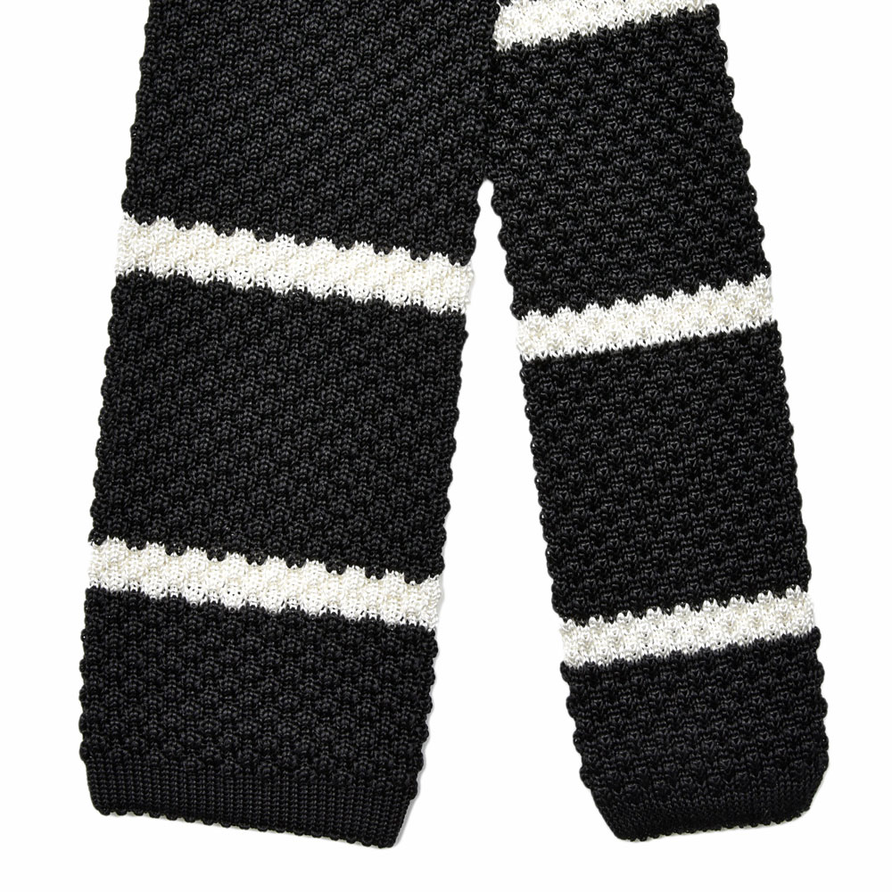 ジャガードのニットタイにストライプをセットしたこちらは大剣幅が7cmになっていましてスクエア仕様のニットタイとしてはベーシックなバランスかと思います。