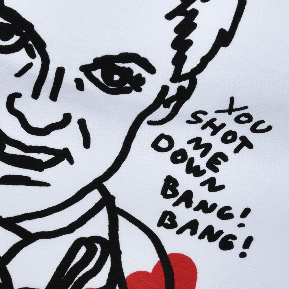 モチーフは恐らくシック・ボーイでしょうか、バンバンしてくれています。レッドのカラーを効果的に使用することでTシャツ全体に勢いを感じさせてくれるものになっています。