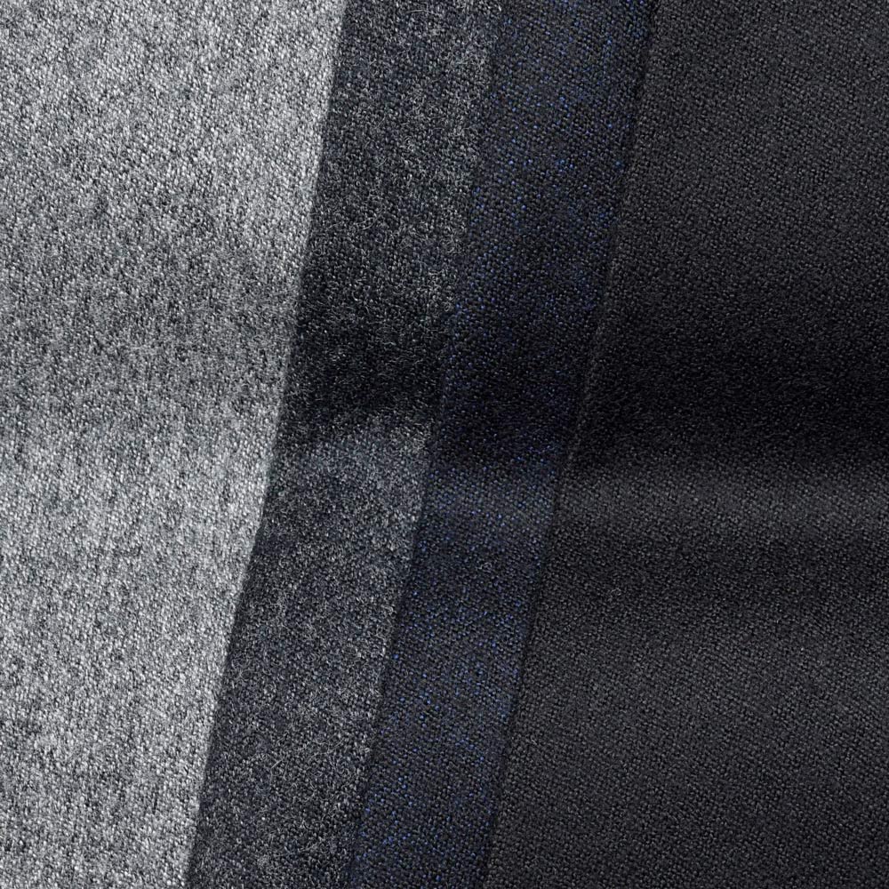 SUPER120'sの原毛を用い、さらりと織り上げられた上質なファブリック。家庭洗濯可能というところもこの生地の特徴でして、とても梳毛ウールとは思えないクオリティがあります。