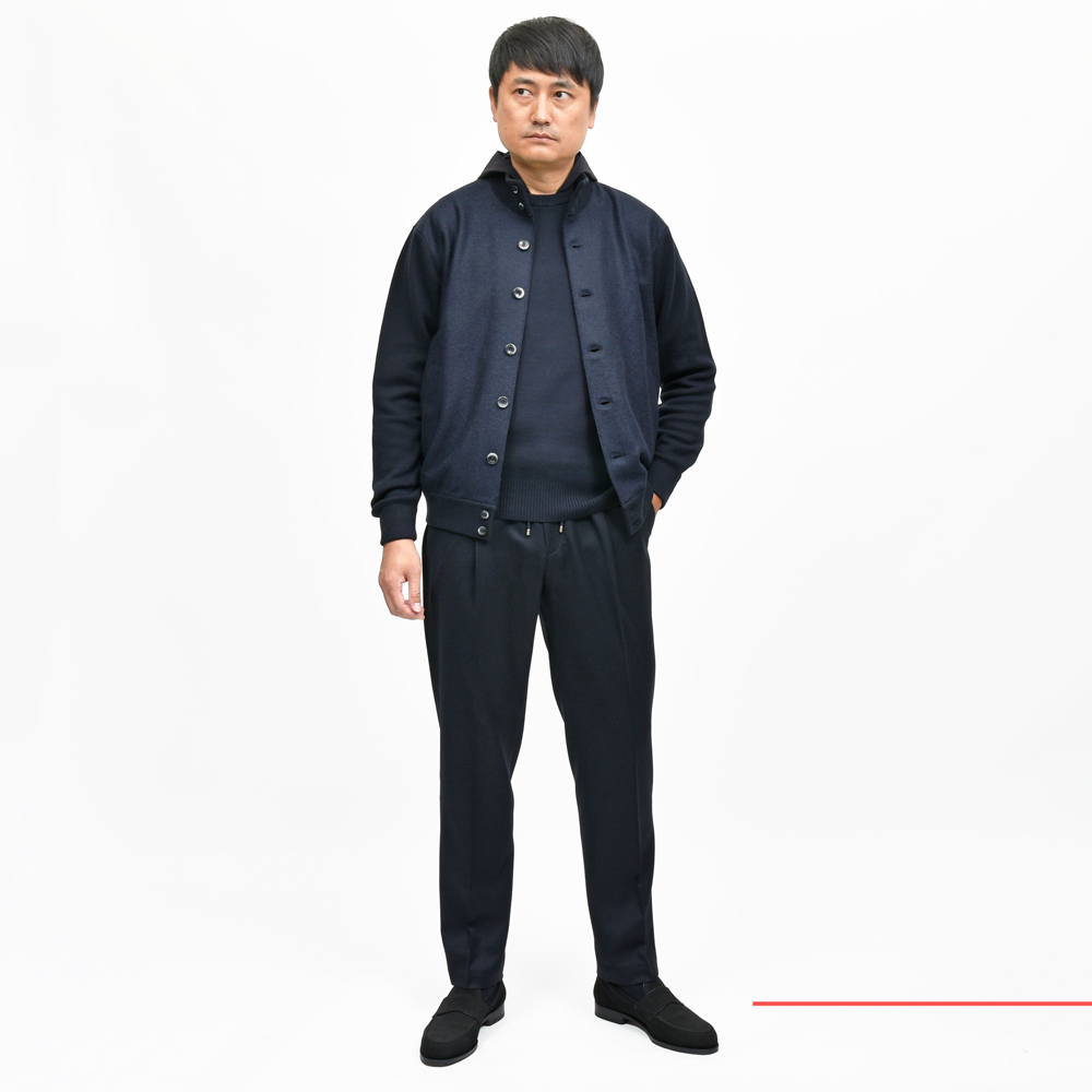 すっきりしたデザインのドライバーズブルゾン・・・をニットベースで作ったという感じです。