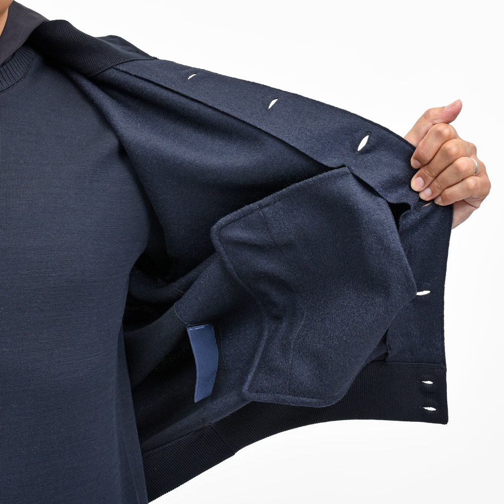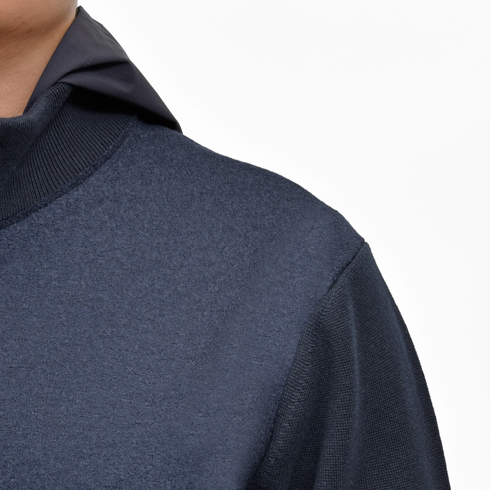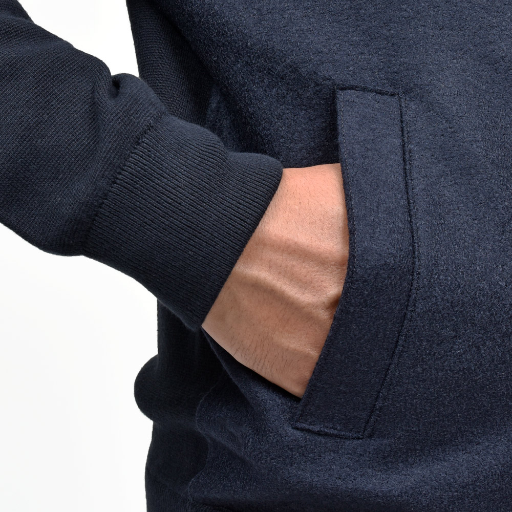 ファッション的に一番目立つ前身頃はフェルテッドウールを使用して、単なるニットブルゾンでは表現できない高級感を。