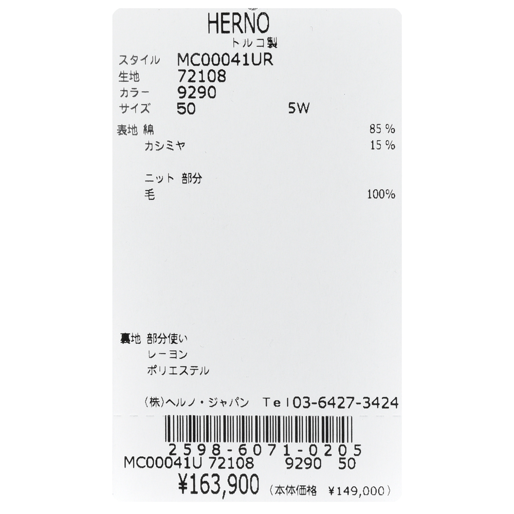 『ルーツのあるデザインをHERNO流に進化させたモデルです。』