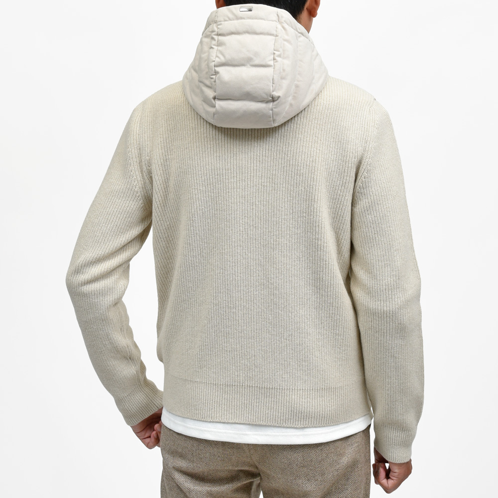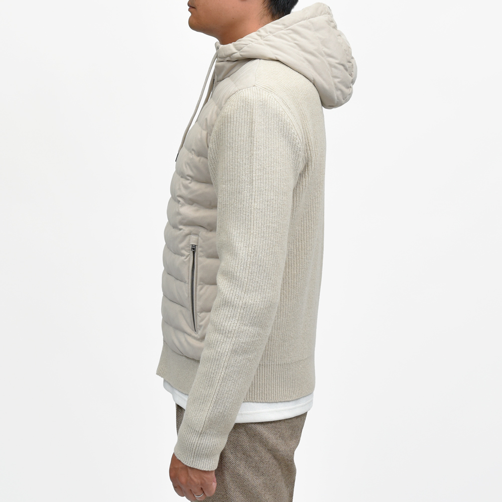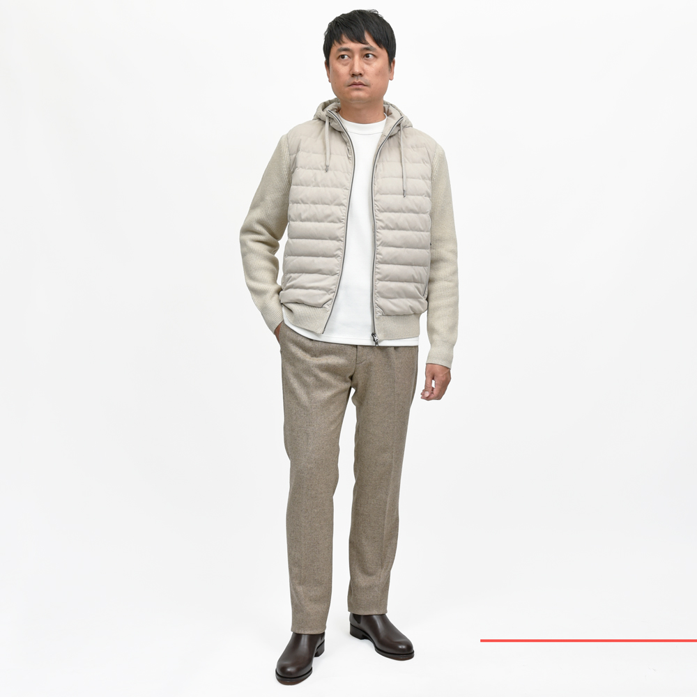HERNOらしいコンビブルゾン、完成度はかなり高いです。ニットの動きやすさとダウンの保温力、本格的な寒さまではこの一着で乗り切れてしまうかもしれません。アイテムとしてはカジュアルですがクオリティが非常に高いのでクラス感があるのもこのブランドならでは。